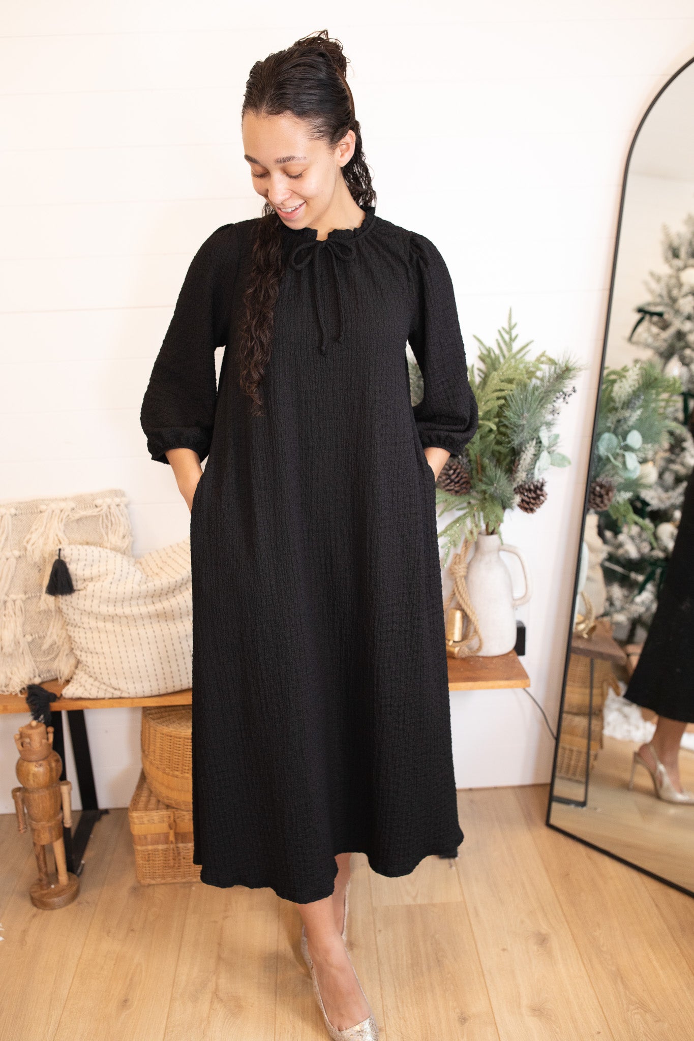 Meet the Cassandra Dress, your new everyday favorite that blends comfort with timeless charm. Designed in multiple beautiful colors, this dress features a soft textured fabric with the perfect amount of stretch, giving you effortless movement and all-day comfort.