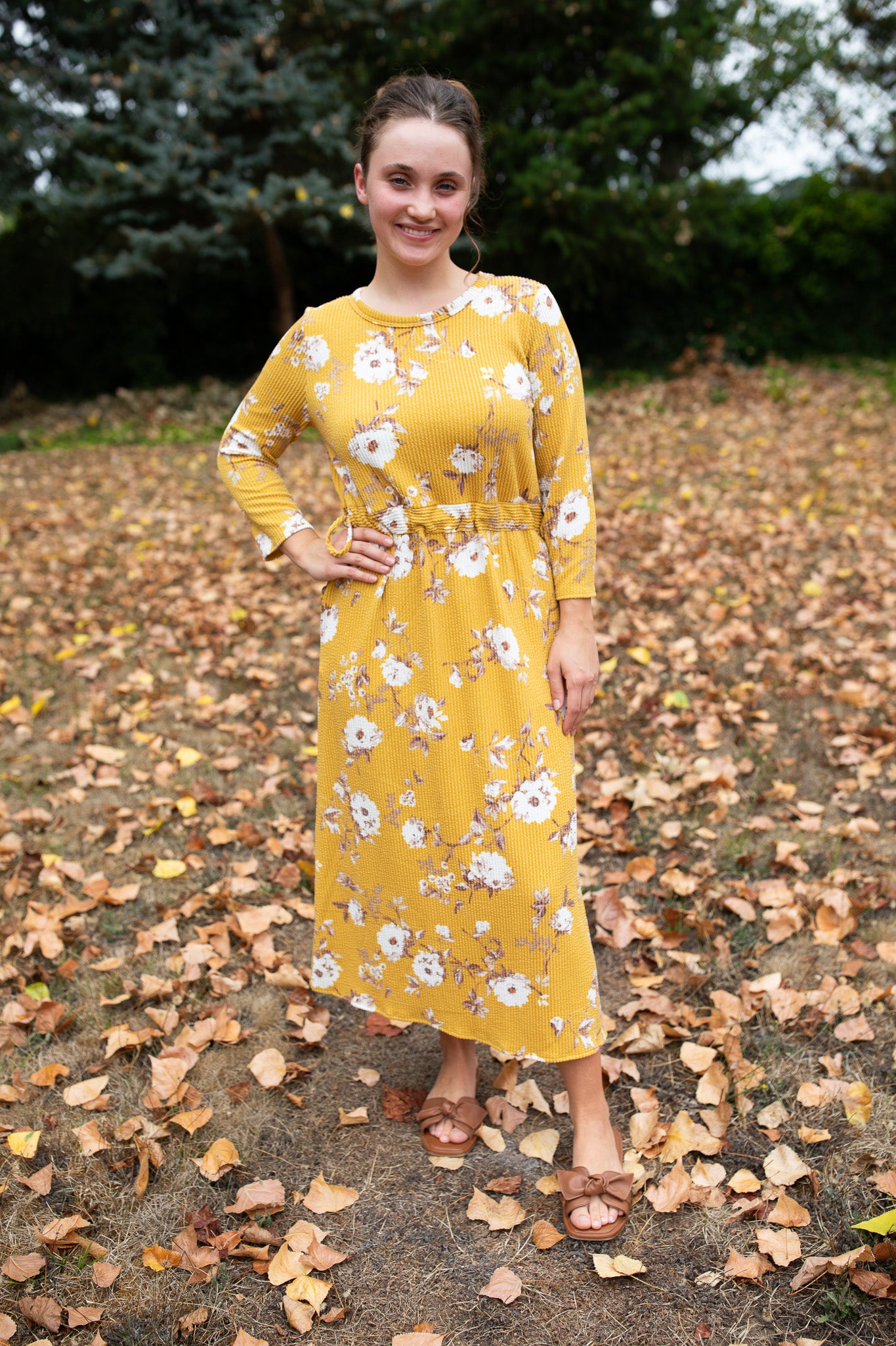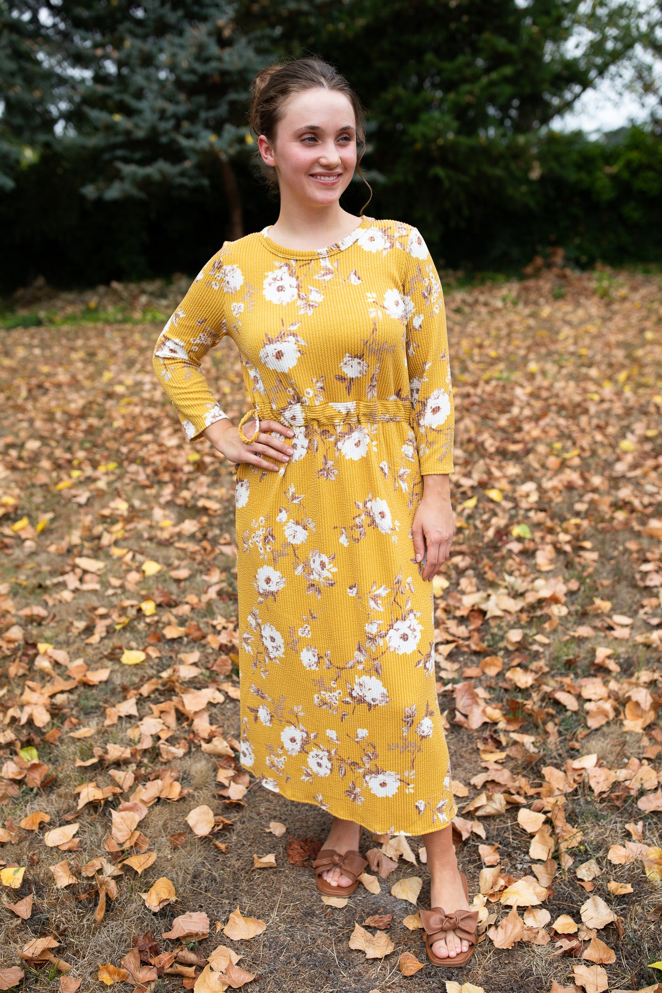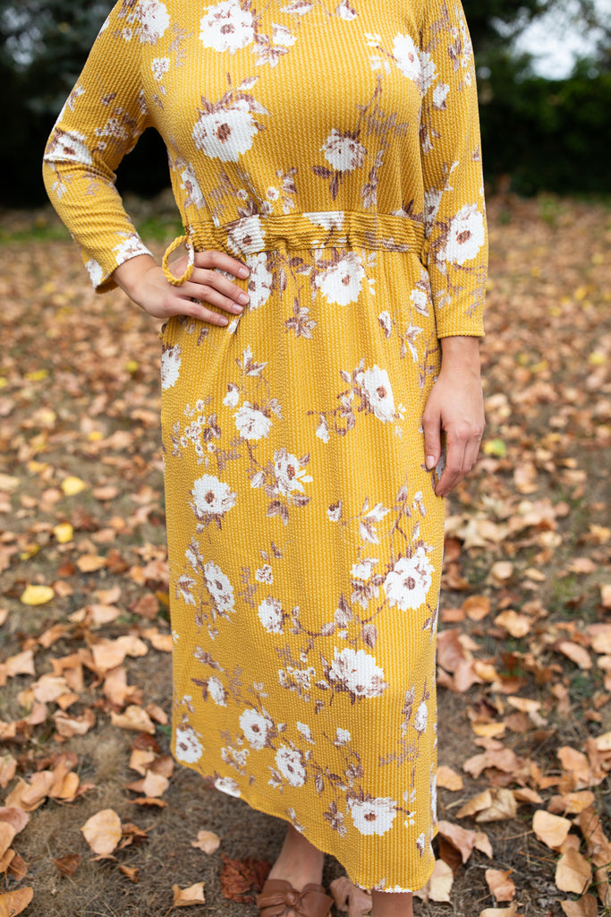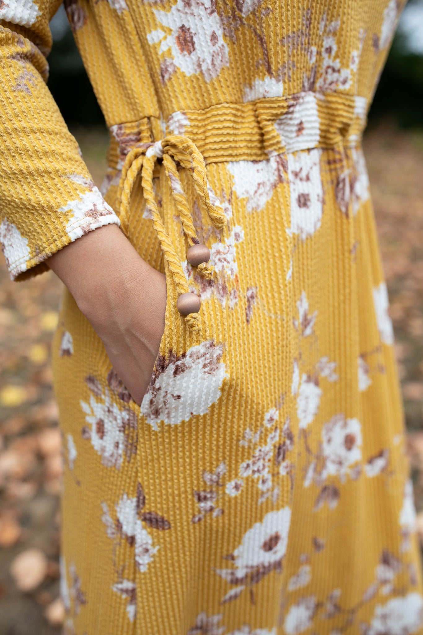 Effortless comfort meets chic style in the Mustard Floral Lounge Dress. Made with a soft ribbed fabric, this dress is perfect for the season — lightweight, breathable, and cozy all at once. The adjustable drawstring waist allows for a flattering, customizable fit, while side pockets add that everyday practicality we all love. Whether you’re dressing it down with sneakers for a casual day or elevating it with boots and accessories, this versatile piece is ready for any occasion.
