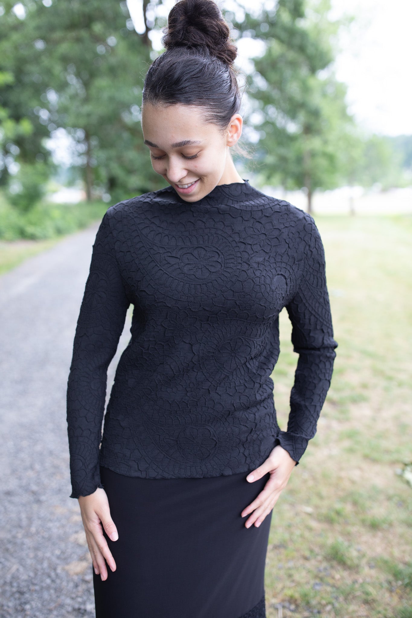 Unlock endless styling options with our Textured Floral Layering Top! This stretchy, one size fits all top is perfect for sizes S - XL, making it a versatile addition to your wardrobe. The mock neck and long sleeves add a touch of sophistication, while the textured fabric adds a unique dimension to your outfits. Great for layering, this top is a must-have for any fashionista.Β
