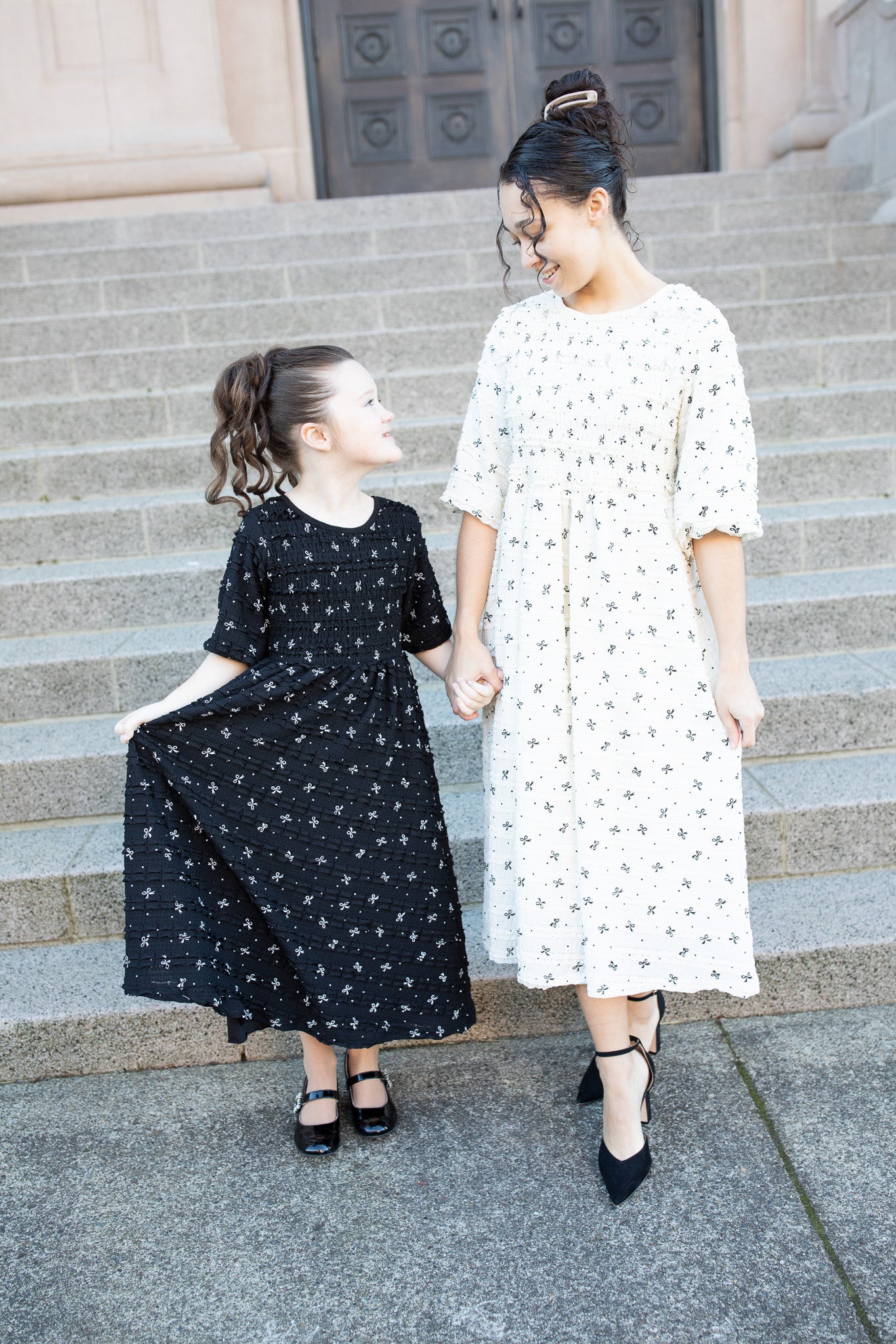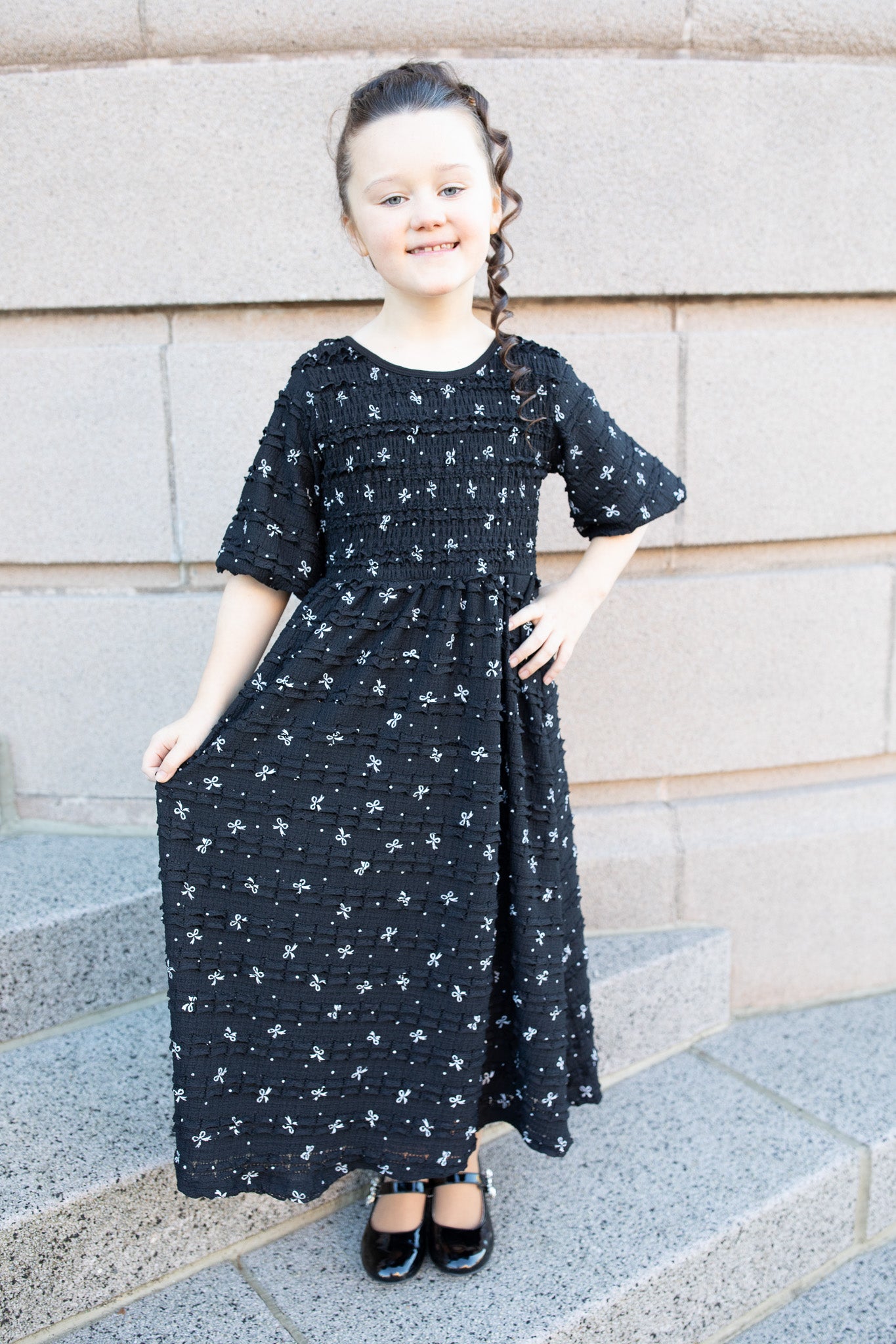 Your little one will feel extra special in our Darling Bows Lace Dress! This precious piece is made from our signature lace ruffle fabric with adorable bow details, giving it the perfect mix of classic and playful. Ima stretchy smocked top and It’s fully lined for comfort and coverage, it pairs beautifully with the women’s version for the sweetest matching moments. Perfect for birthdays, family photos, church, holidays, and twinning with mama!