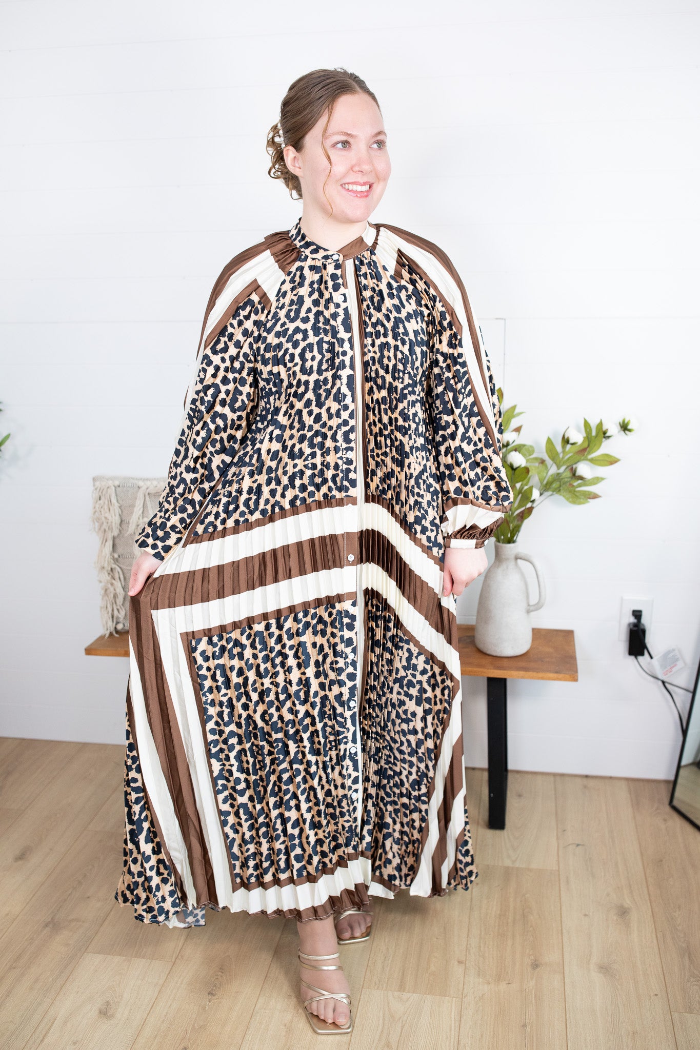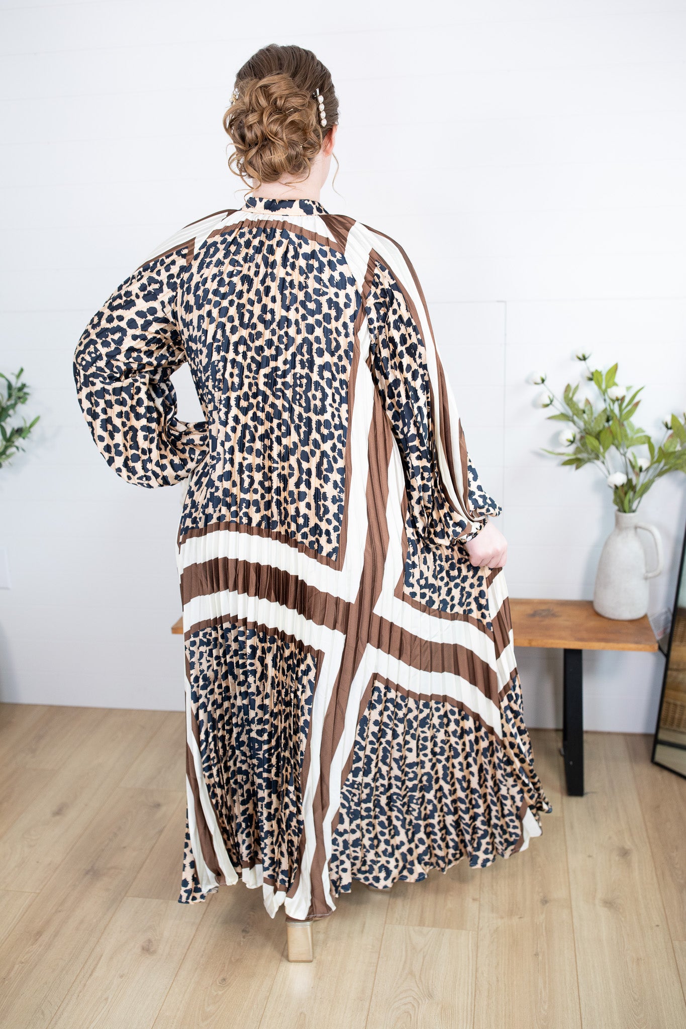 Estelle Dress - Cream & Brown Leopard