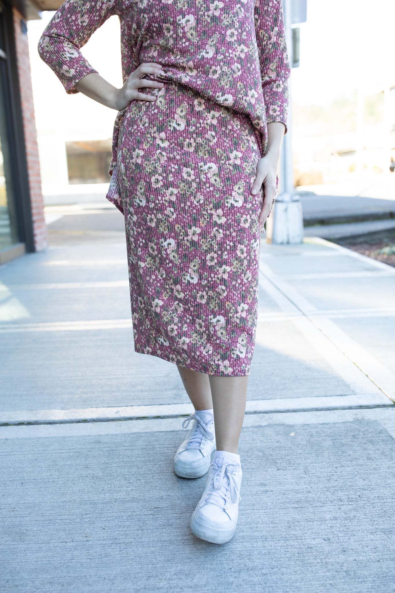 Meet your new go-to spring skirt! Our Lyla Skirt is made from our customer-favorite ribbed fabric in the sweetest spring floral print—soft, stretchy, and so easy to wear all day long. Featuring a comfortable elastic waistband and a flattering fit, this skirt is perfect for everyday outfits, church days, and everything in between.
