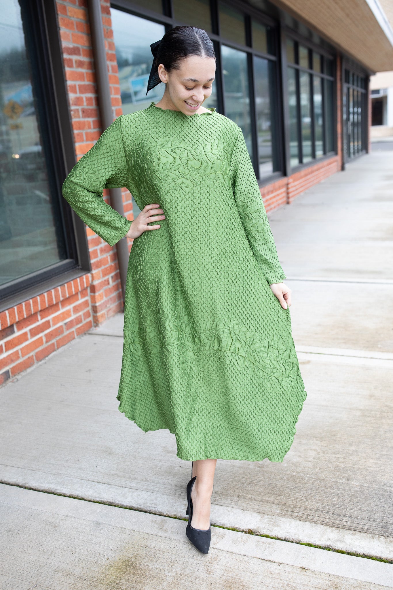 Meet your new “wear everywhere” favorite — this one size textured beauty is as eye-catching as it is effortless. Featuring a stunning raised floral texture throughout and a flowy silhouette, it’s the perfect modest dress for dressing up or keeping it casual. Fits S-L best