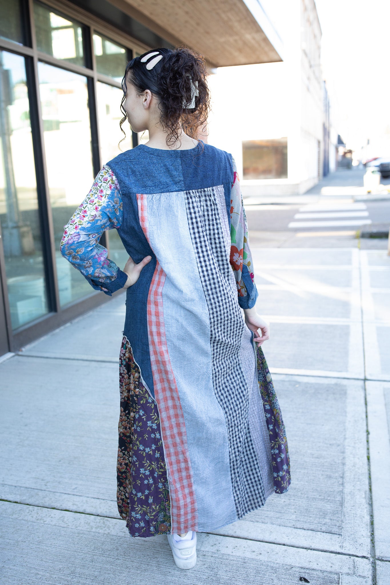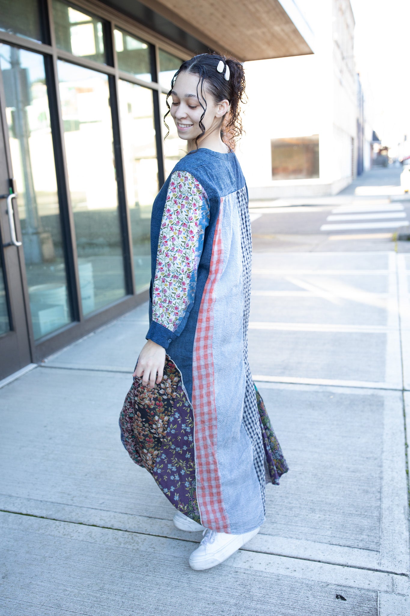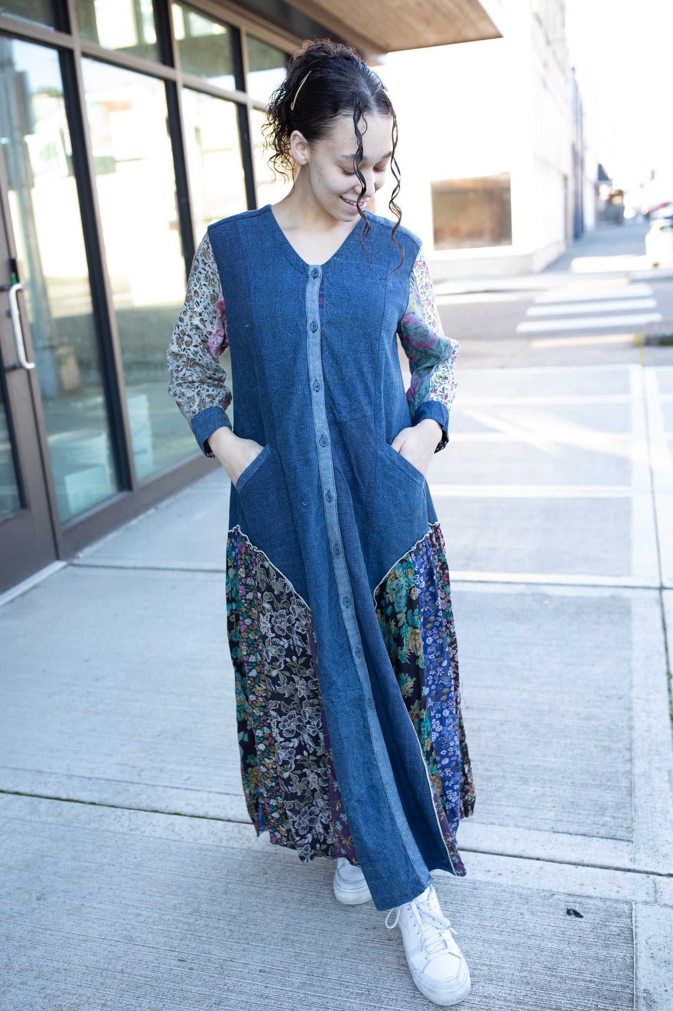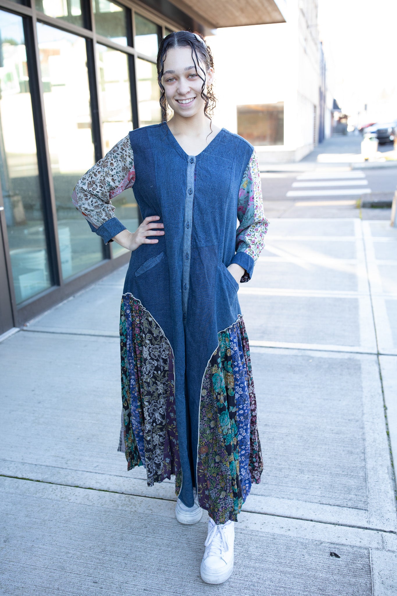Meet your new statement piece: the perfect blend of denim + boho charm! This patchwork beauty features a structured denim body with flowing printed panels for the most unique, eye-catching look. Designed with a front-open button style, it can be worn as a dress OR styled open as a layering duster—making it a must-have for year-round wear.