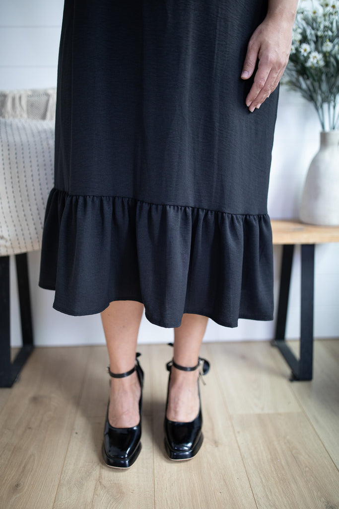Elevate your wardrobe with the versatile and stylish Gracelynn Dress. Featuring a lined design and elbow-length sleeves with button details, this dress is perfect for all year round. The tie at the back of the neck adds a unique touch, while the multiple color options allow you to style it with accessories or printed undershirts. Step out in confidence and make a statement with the Gracelynn Dress!