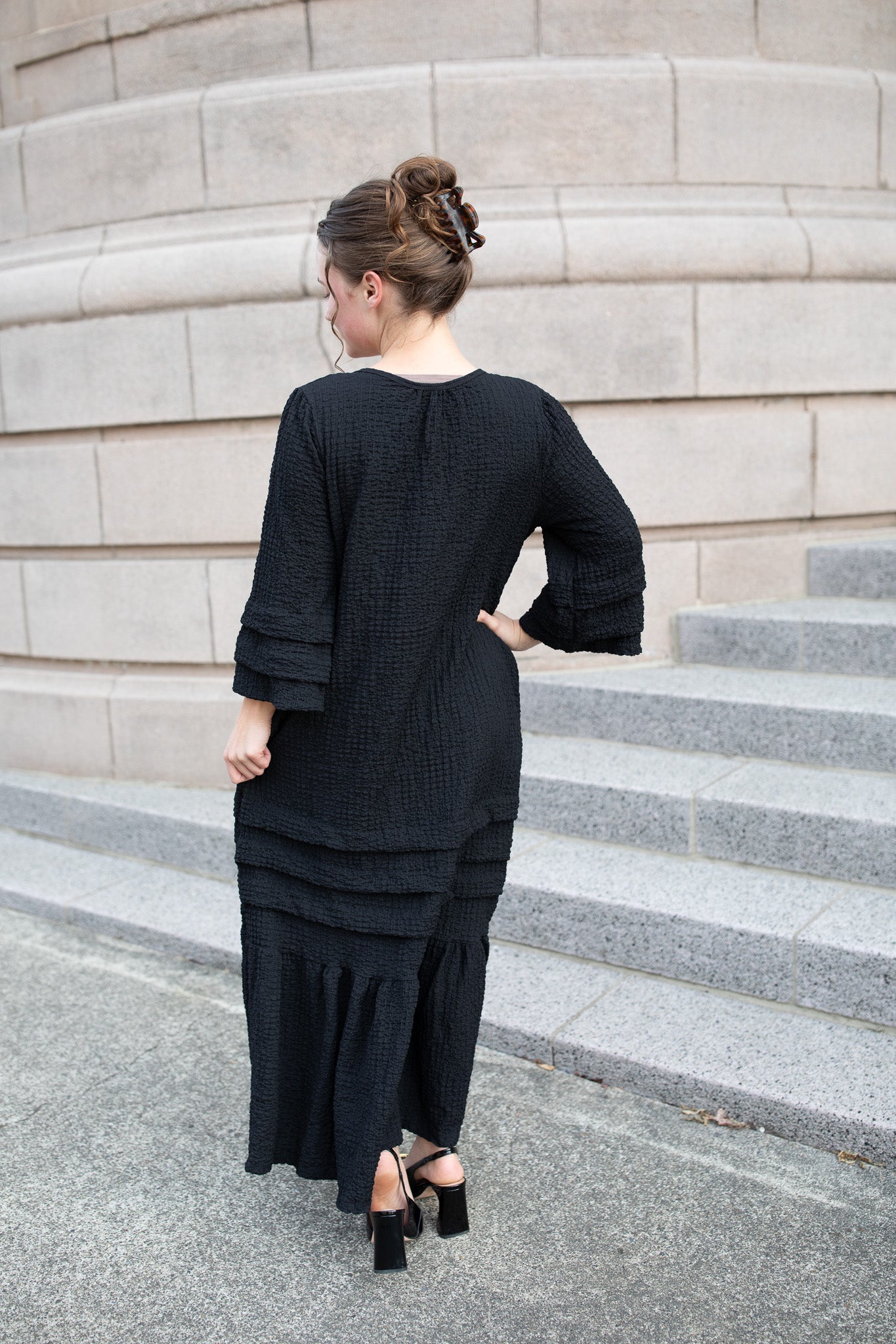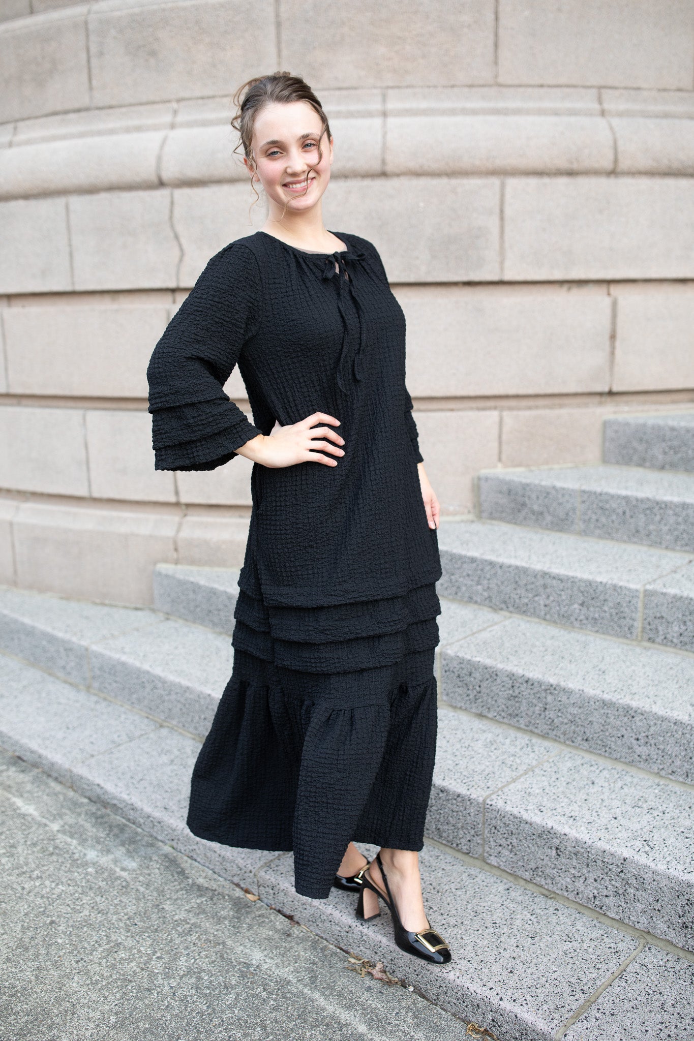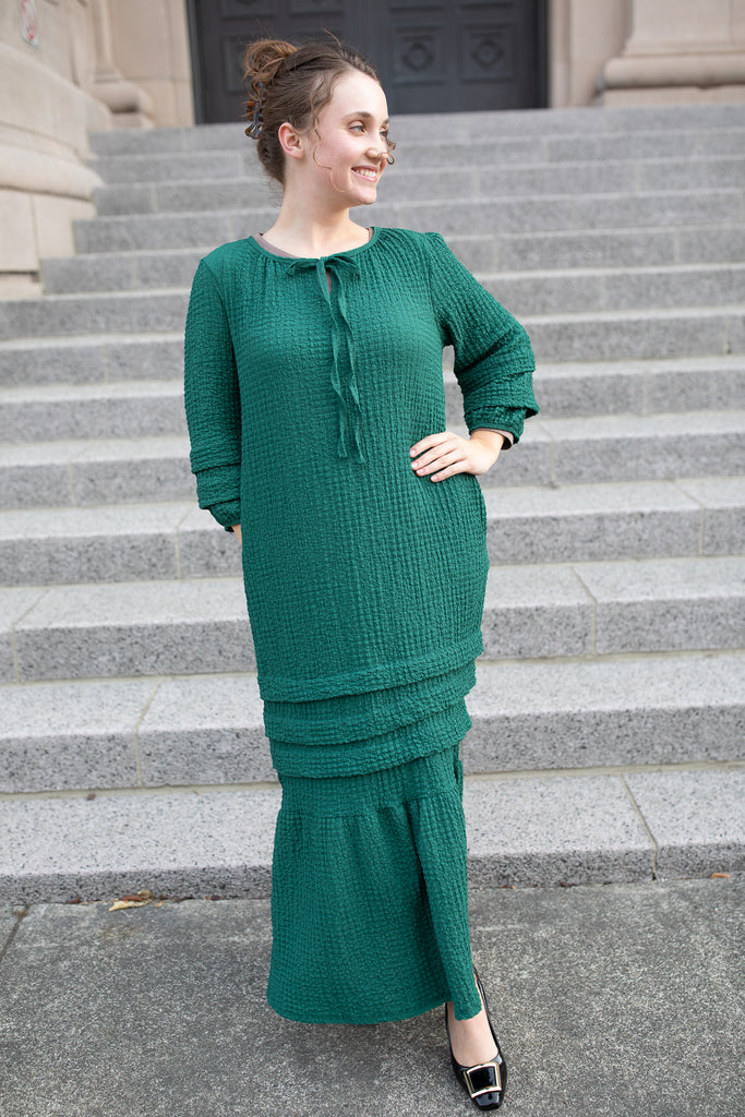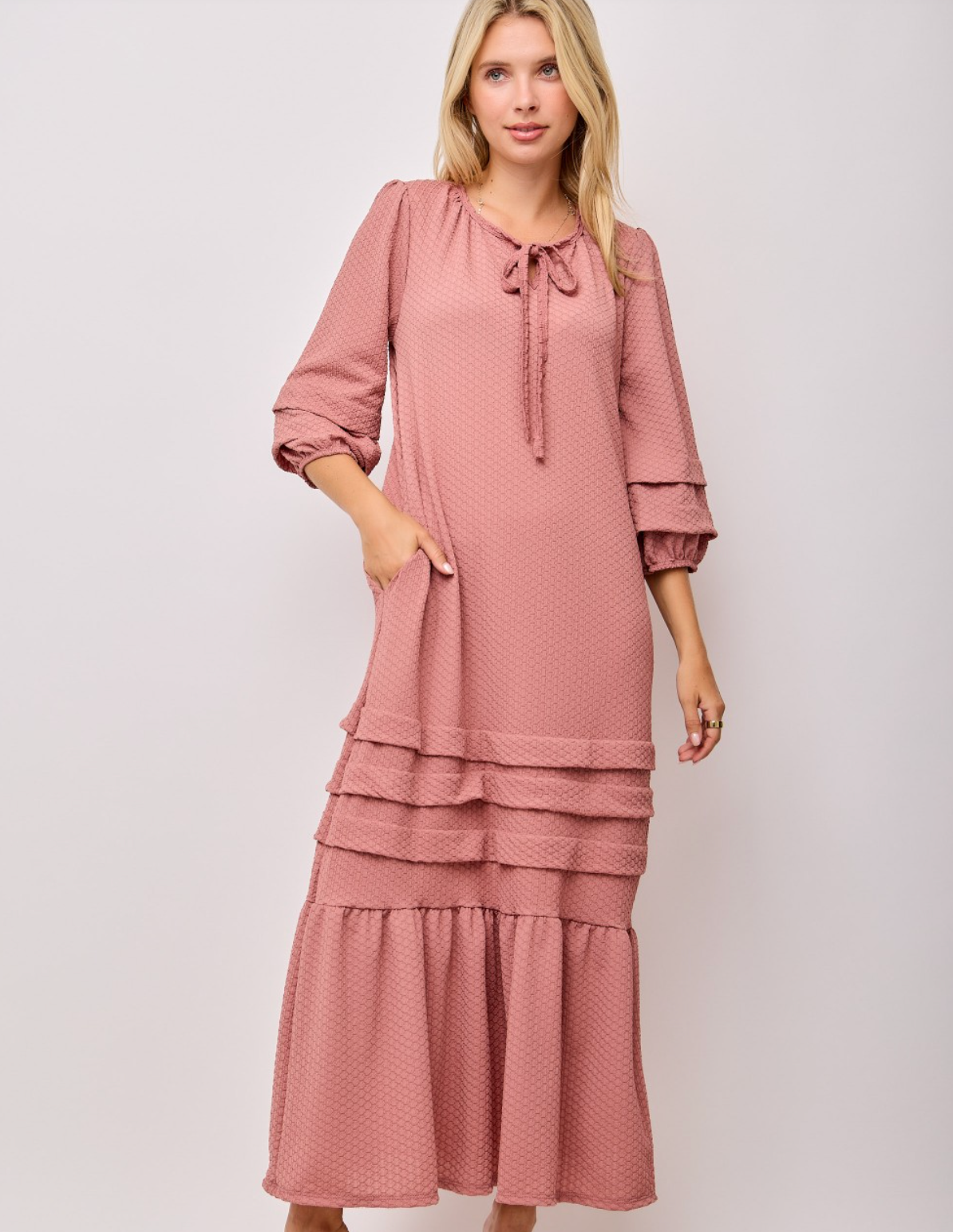 The Textured Fall Dress combines cozy comfort with timeless charm. Made from a soft, stretchy textured fabric, this dress moves effortlessly with you while keeping its elegant shape. Thoughtfully designed with hidden pockets, tiered detailing, and a relaxed fit, it’s the perfect blend of style and comfort.
