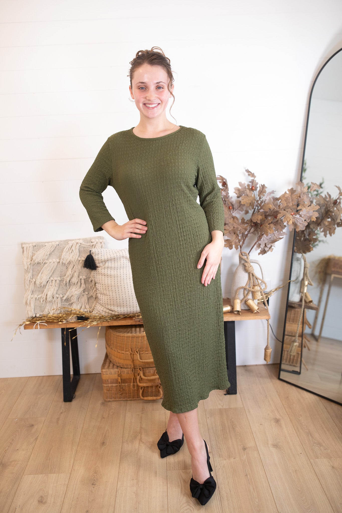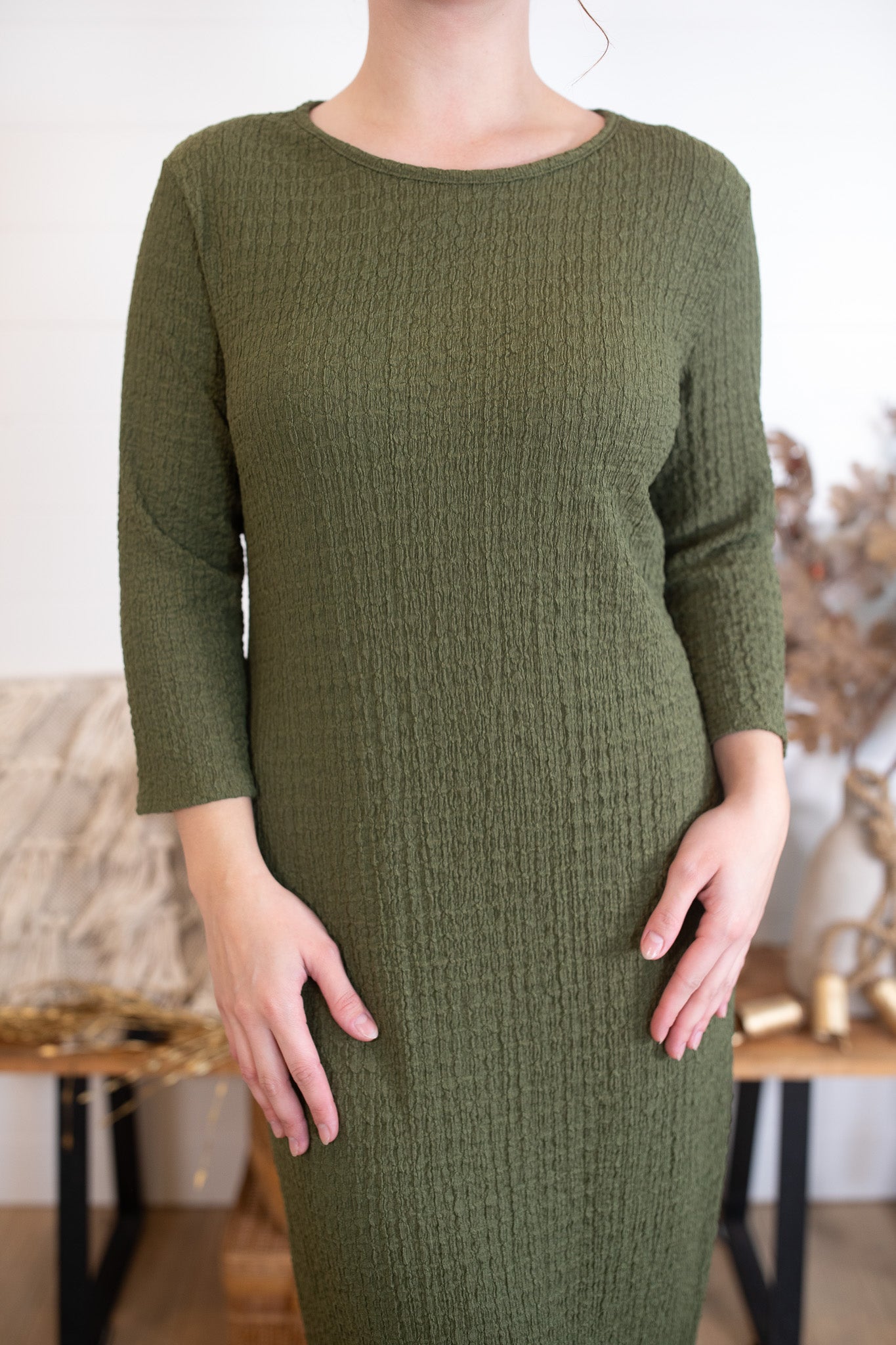Your new go-to layering piece! Our Textured Layering Dress is made from an ultra-soft, stretchy fabric that feels as good as it looks. Designed to be worn under your favorite cardigans, jumpers, or vests, it offers a smooth, comfortable fit that moves with you. True to size for layering — size up if you prefer a relaxed fit or plan to wear it on its own. Effortless, cozy, and versatile for every season.