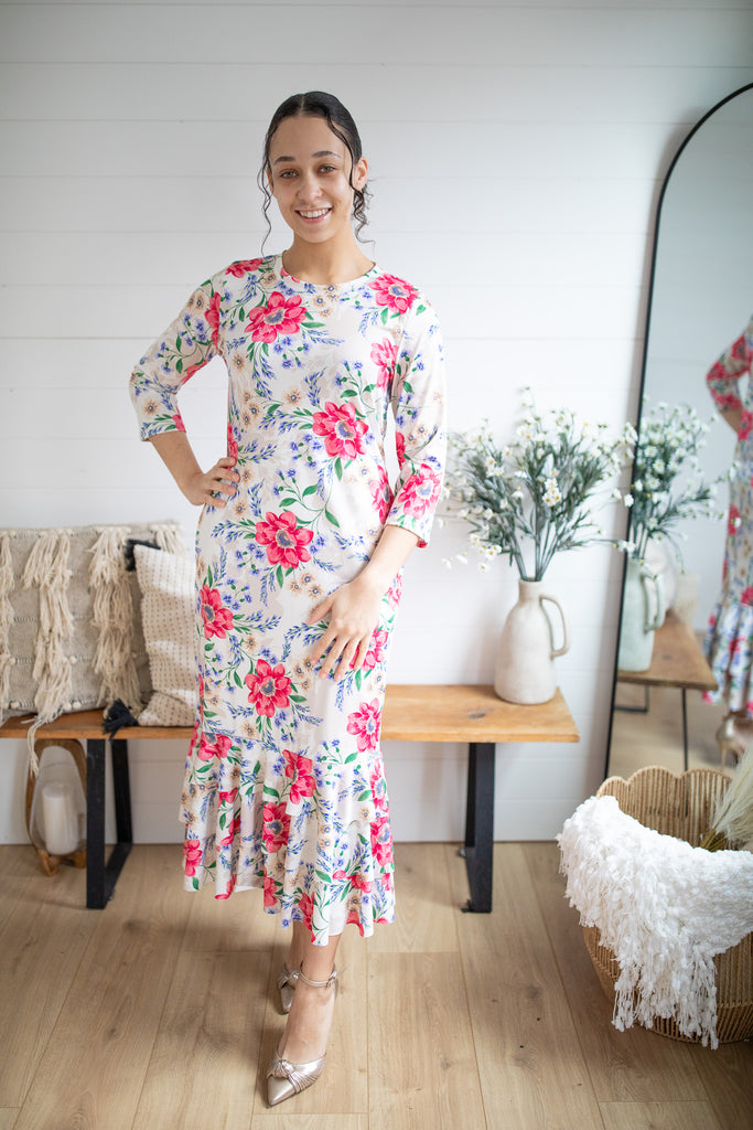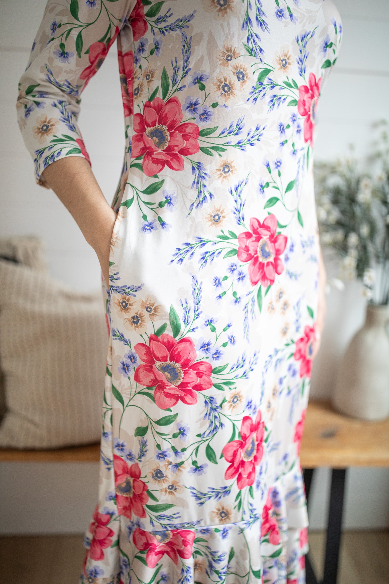 Get ready for sunny days with our Floral Ruffle Hem Layering Dress! This fun and flirty dress features an eye-catching floral design that is perfect for spring and summer. The ruffle hem adds a stylish touch, while the pockets provide convenience. Made with stretchy polyester/spandex material, this dress is both comfortable and versatile. Add this must-have piece to your wardrobe today!