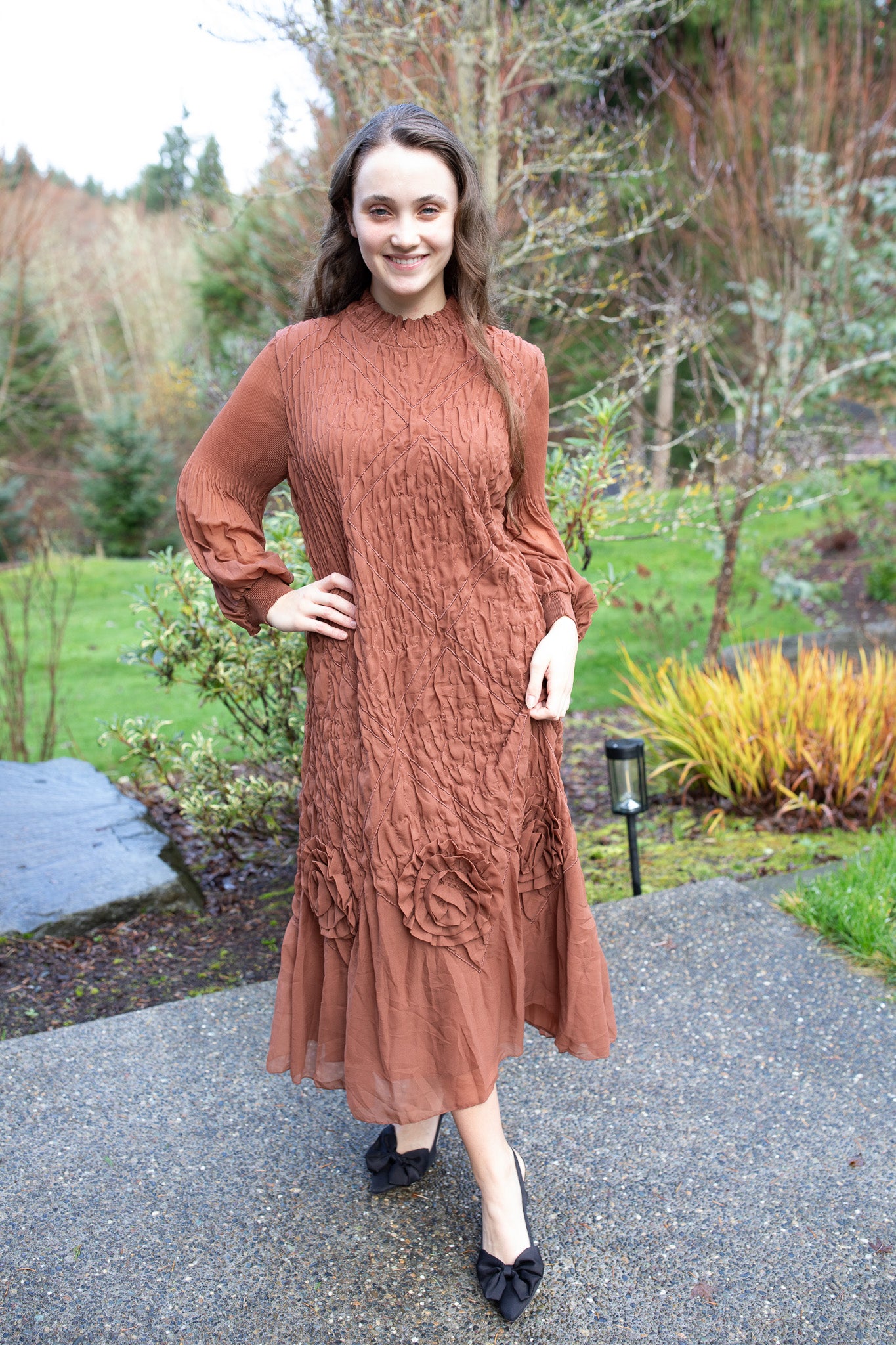 Elegant, embroidered, and effortlessly statement-making β this one-size dress is a true showstopper. Designed with the same luxurious textured embroidery you loved, this version features three stunning dimensional roses along the hem for an extra touch of romance. The silhouette flows beautifully with plenty of room and movement, making it comfortable while still incredibly elevated. A soft lining ensures smooth wear, while the lightweight sheer outer layer creates a dreamy, ethereal drape. This one-size style fits beautifully through a few sizes β but as always, please check the measurements to ensure the perfect fit. A standout piece for holidays, special events, and every moment you want to feel unforgettable.