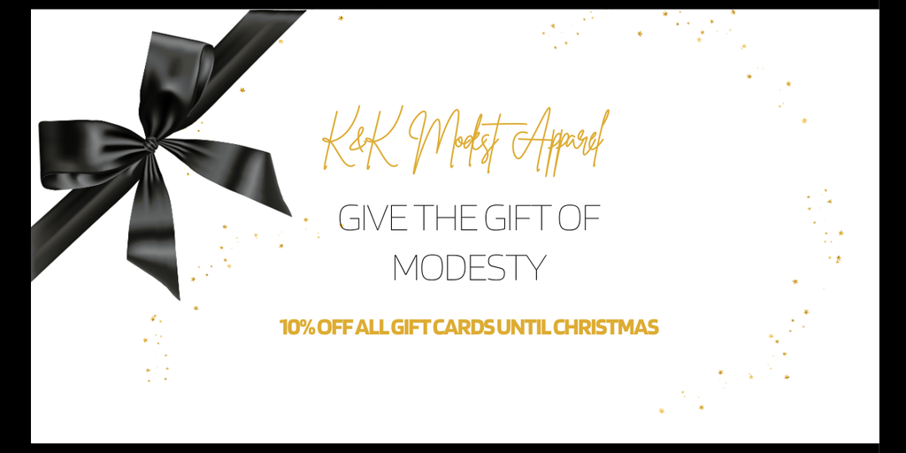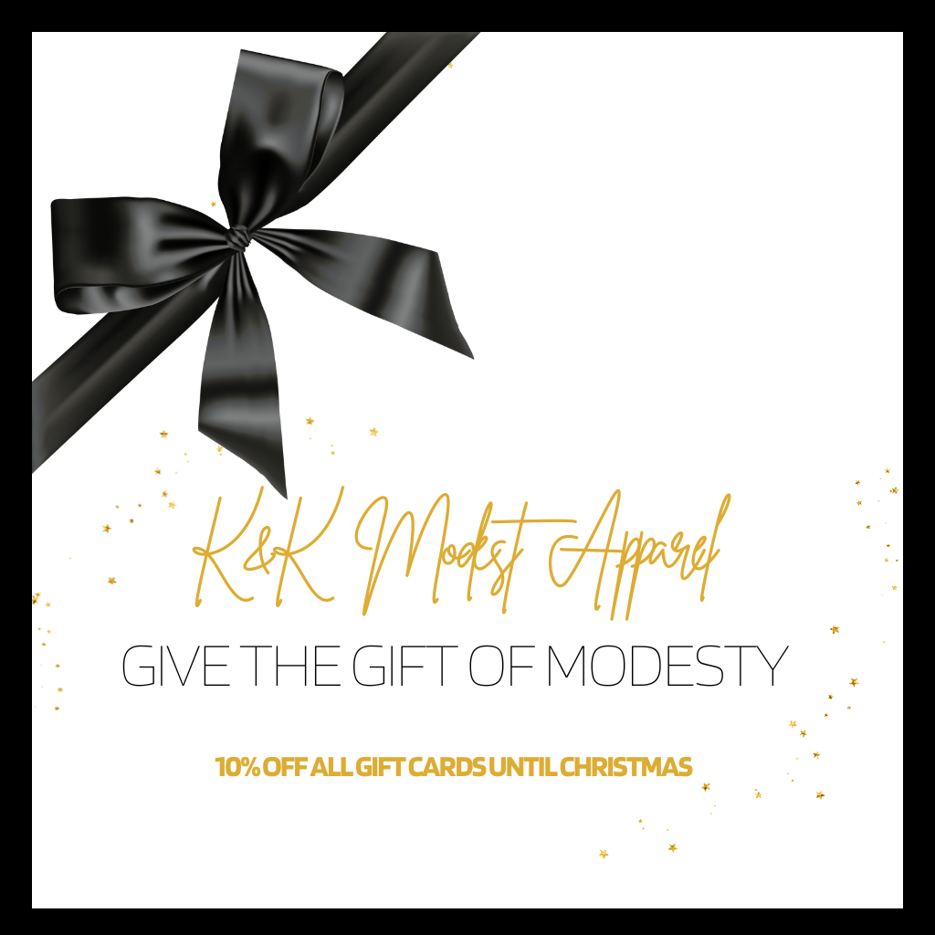 Give the gift of modest apparel! Our gift cards are generated automatically after purchasing. You will receive an e-mail with your code! Please check your spam folder if you cannot find it.