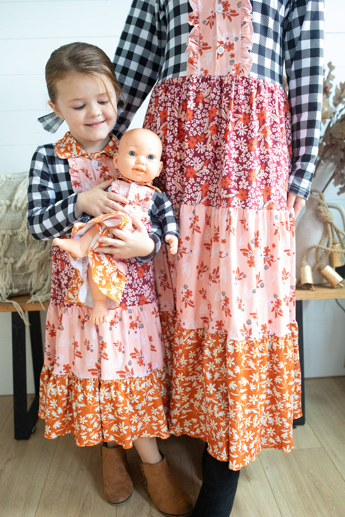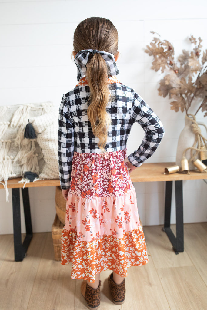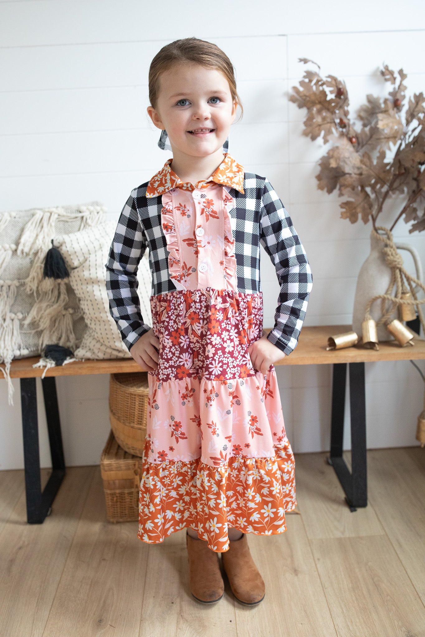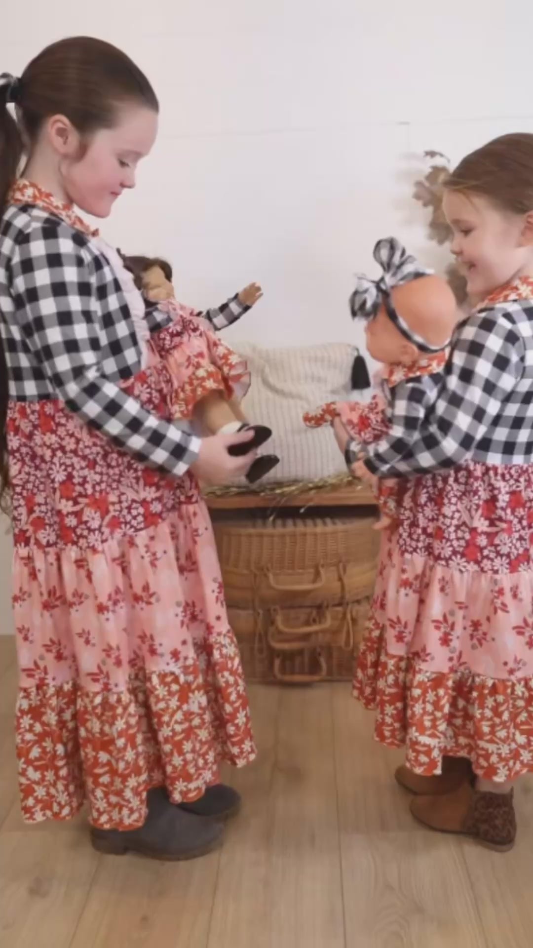 A mini version of our customer favorite — the Girls’ Mixed Print Kali Dress brings back the much-loved print in a brand-new design! Exclusively created by K&K, this darling dress is made from the same soft, medium-weight stretch fabric as the women’s version, offering comfort and warmth all season long. Featuring a collared neckline, functional front buttons, and a tiered skirt perfect for twirling — it’s a cozy, cheerful, and unique look she’ll love to match with mom.