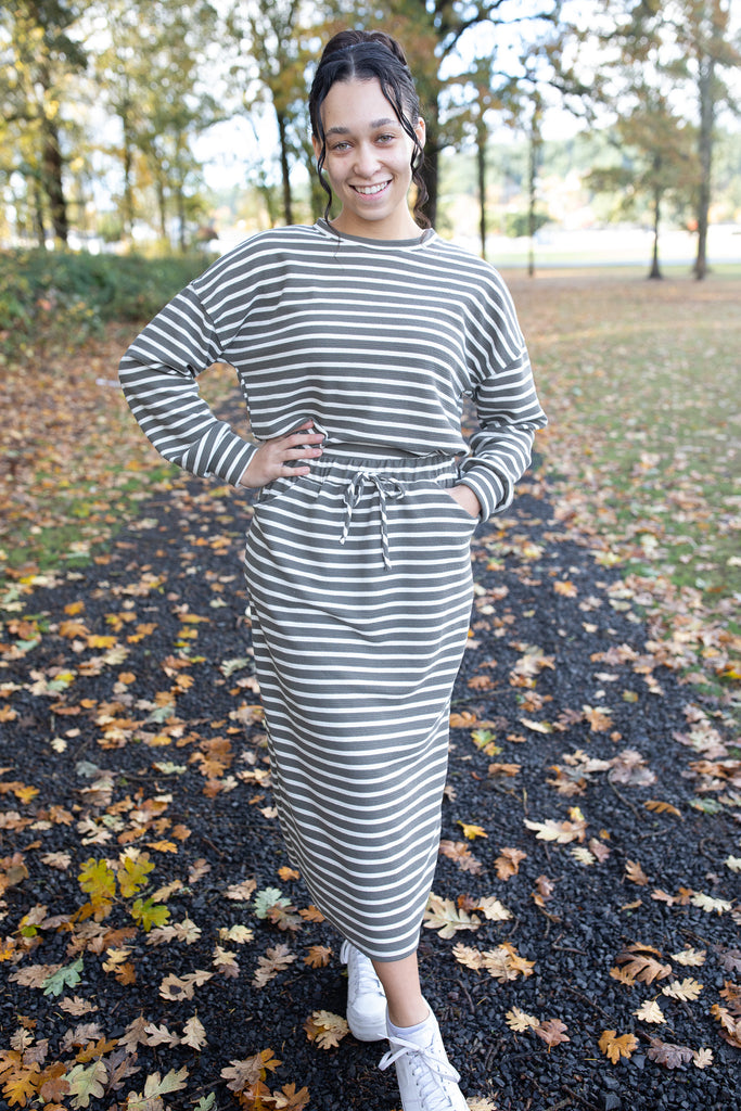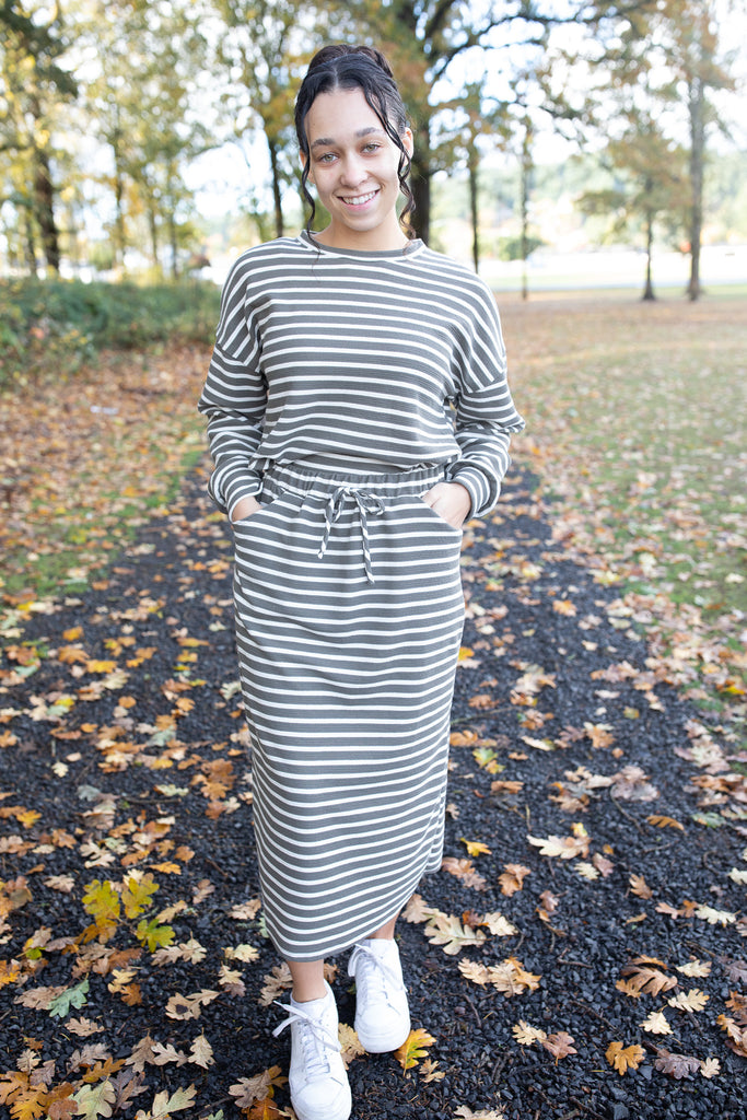 Stay cozy and chic with our Comfy Moment Skirt! Crafted from the same soft, ribbed leopard fabric as the matching top, this modest skirt features an elastic waistband with a ties—plus pockets for everyday comfort. Effortlessly stylish and easy to pair, it’s the perfect piece for lounging, errands, or a cozy day out.