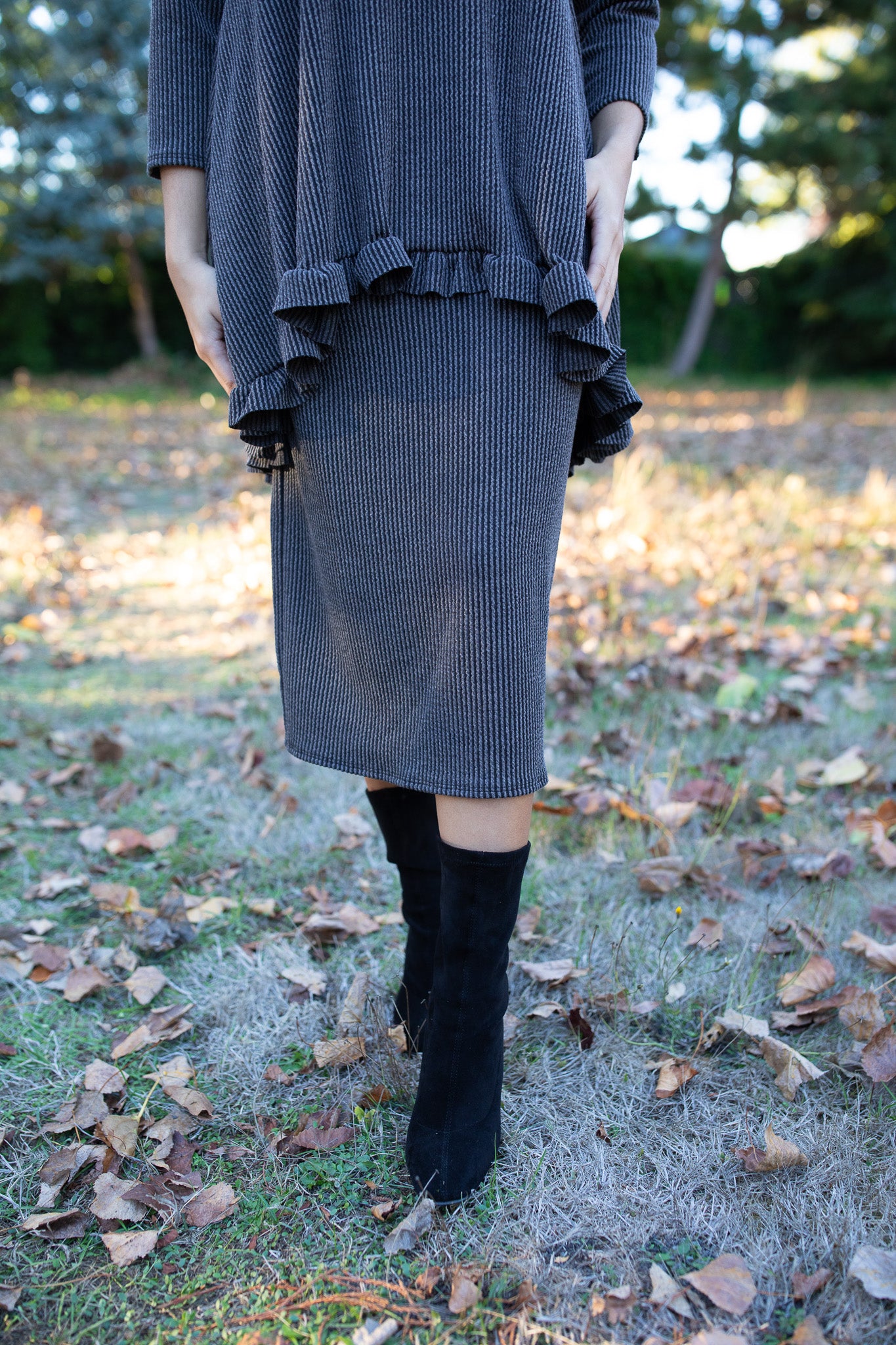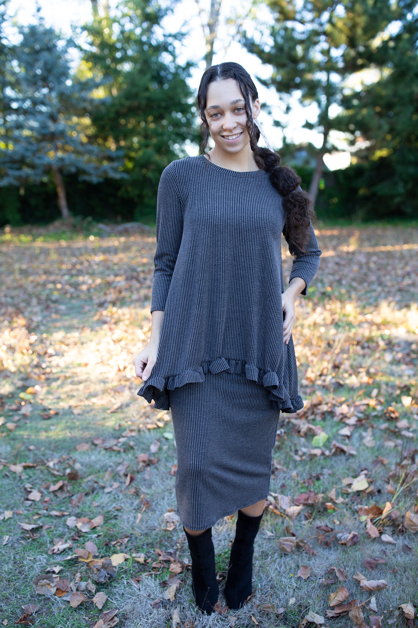 Our popular ribbed pencil skirt returns in the Winter Ridge Skirt — a timeless, flattering style made from a soft, medium-weight ribbed fabric that moves with you. Featuring a comfortable elastic waistband and sleek, modest silhouette, it’s the perfect blend of comfort and sophistication. Pairs perfectly with the Winter Ridge Top for an elevated matching look or mix and match for endless versatility.