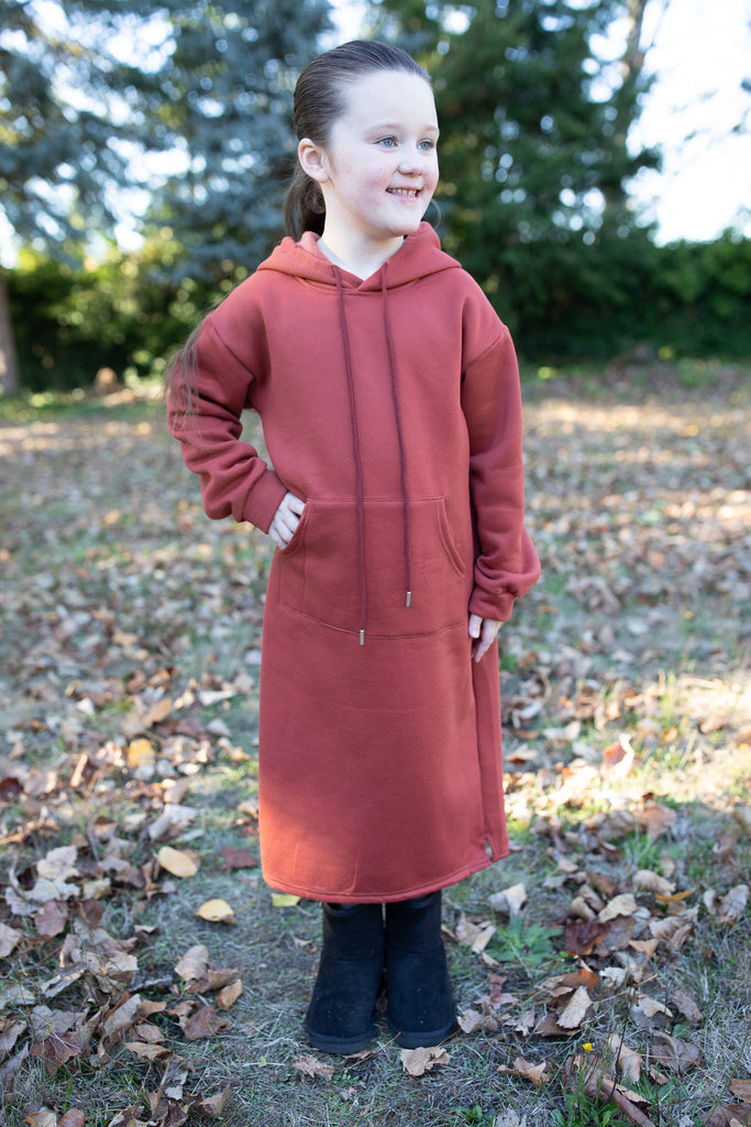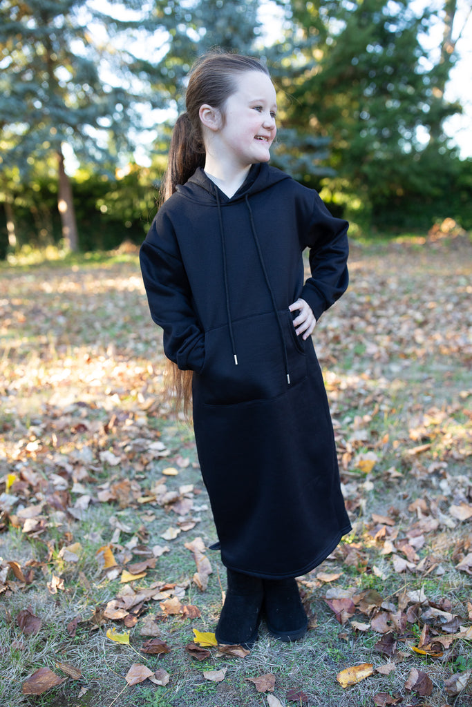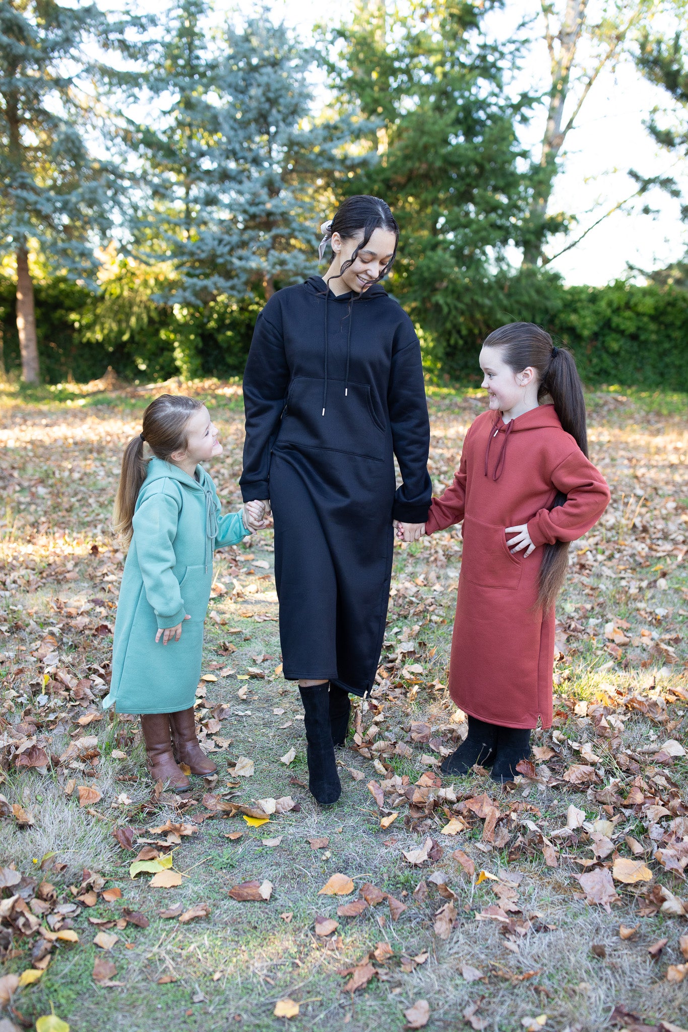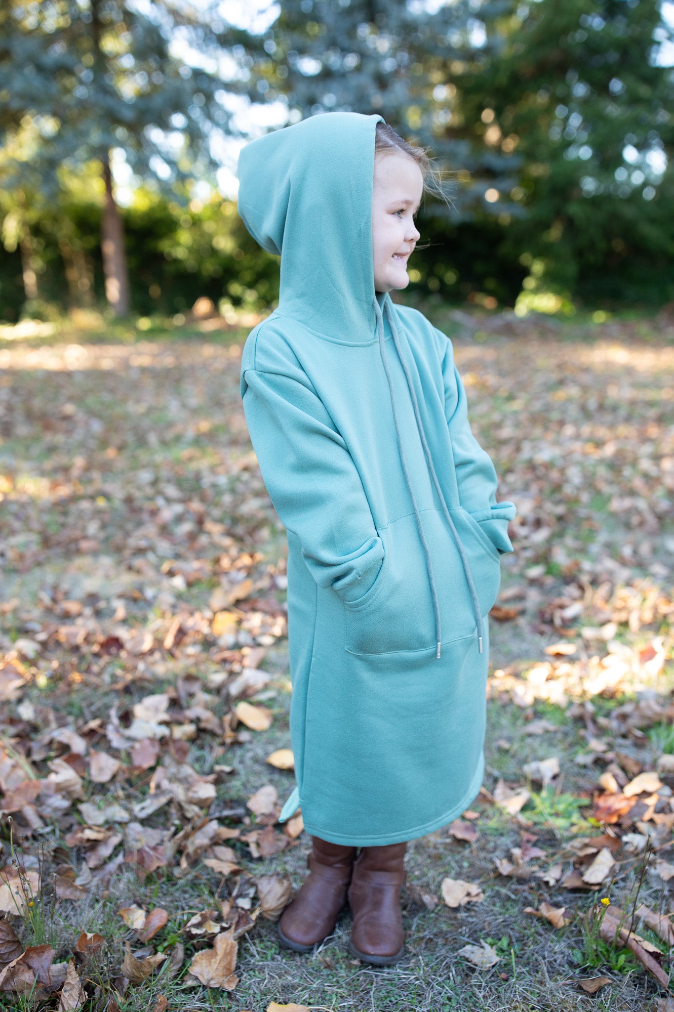 Your little one will love the cozy comfort of our Fleece-Lined Hoodie Dress! Made with the same soft, thick fabric as the women’s version, it’s perfect for play, school, or lounging at home. With a front pocket, long sleeves, and warm fleece lining, it’s a comfy and cute favorite she’ll reach for all season.