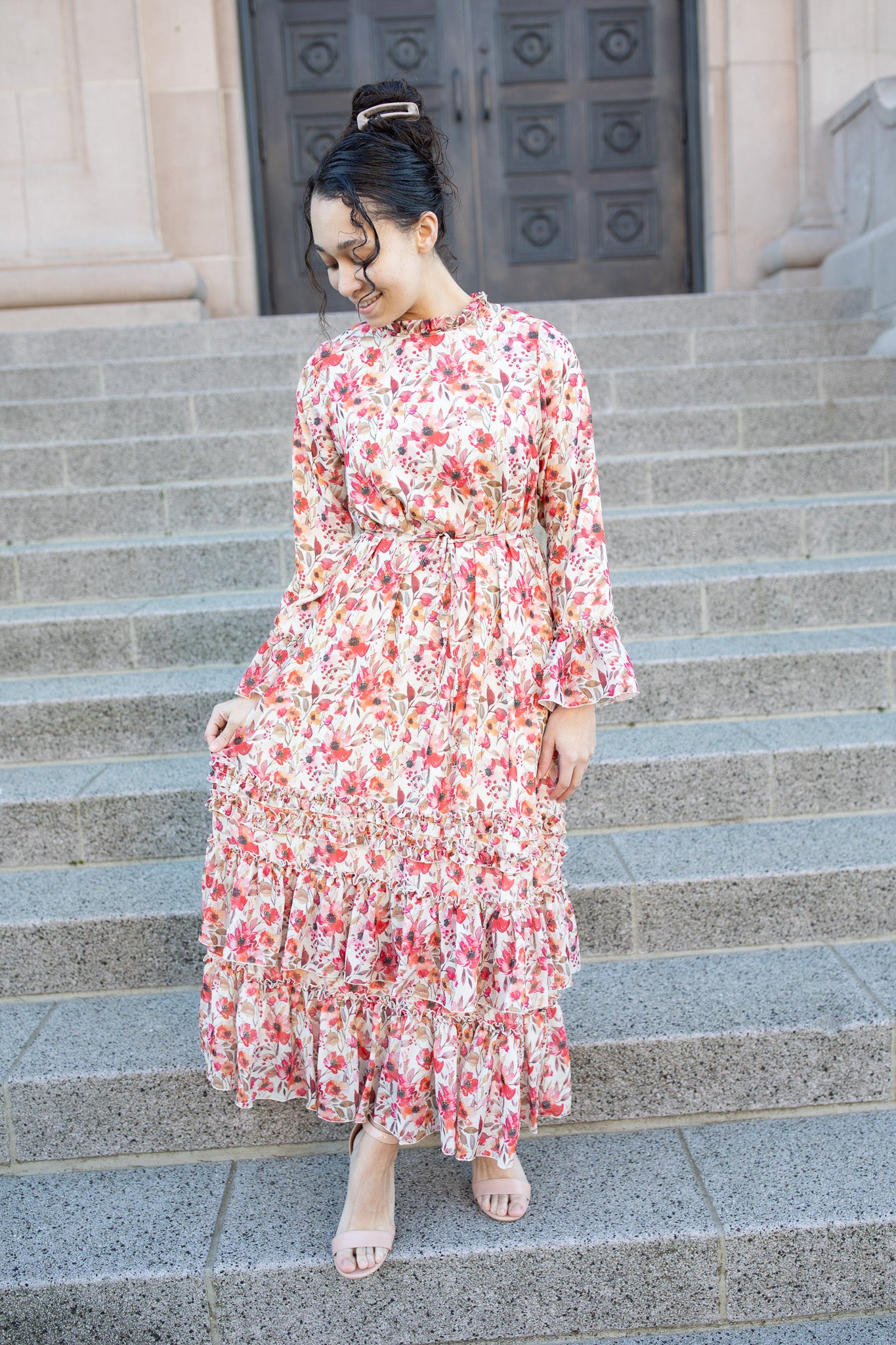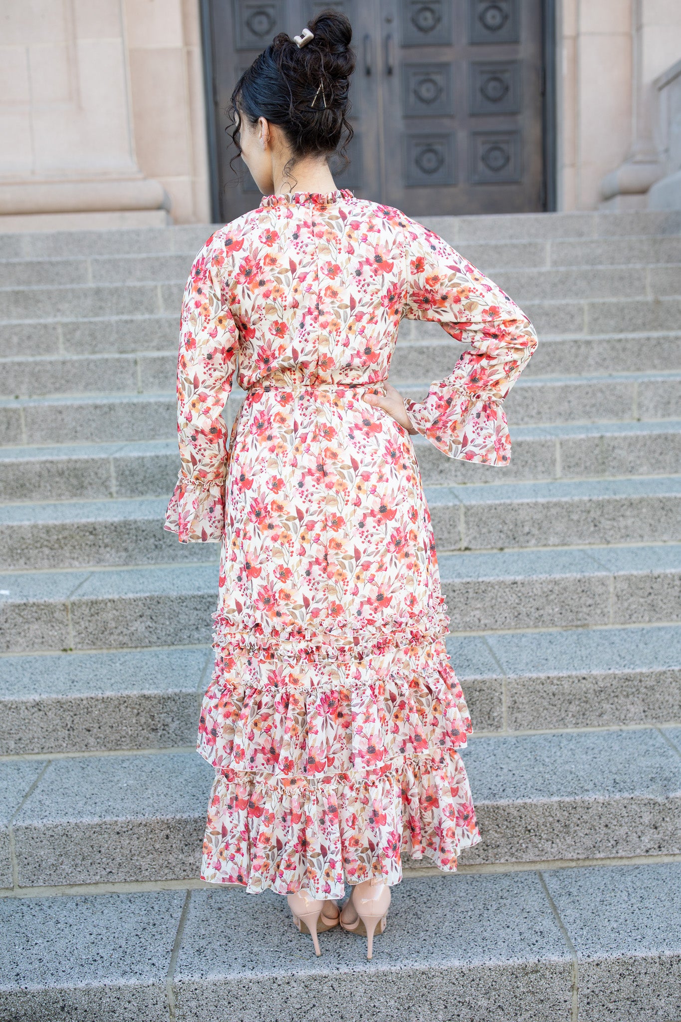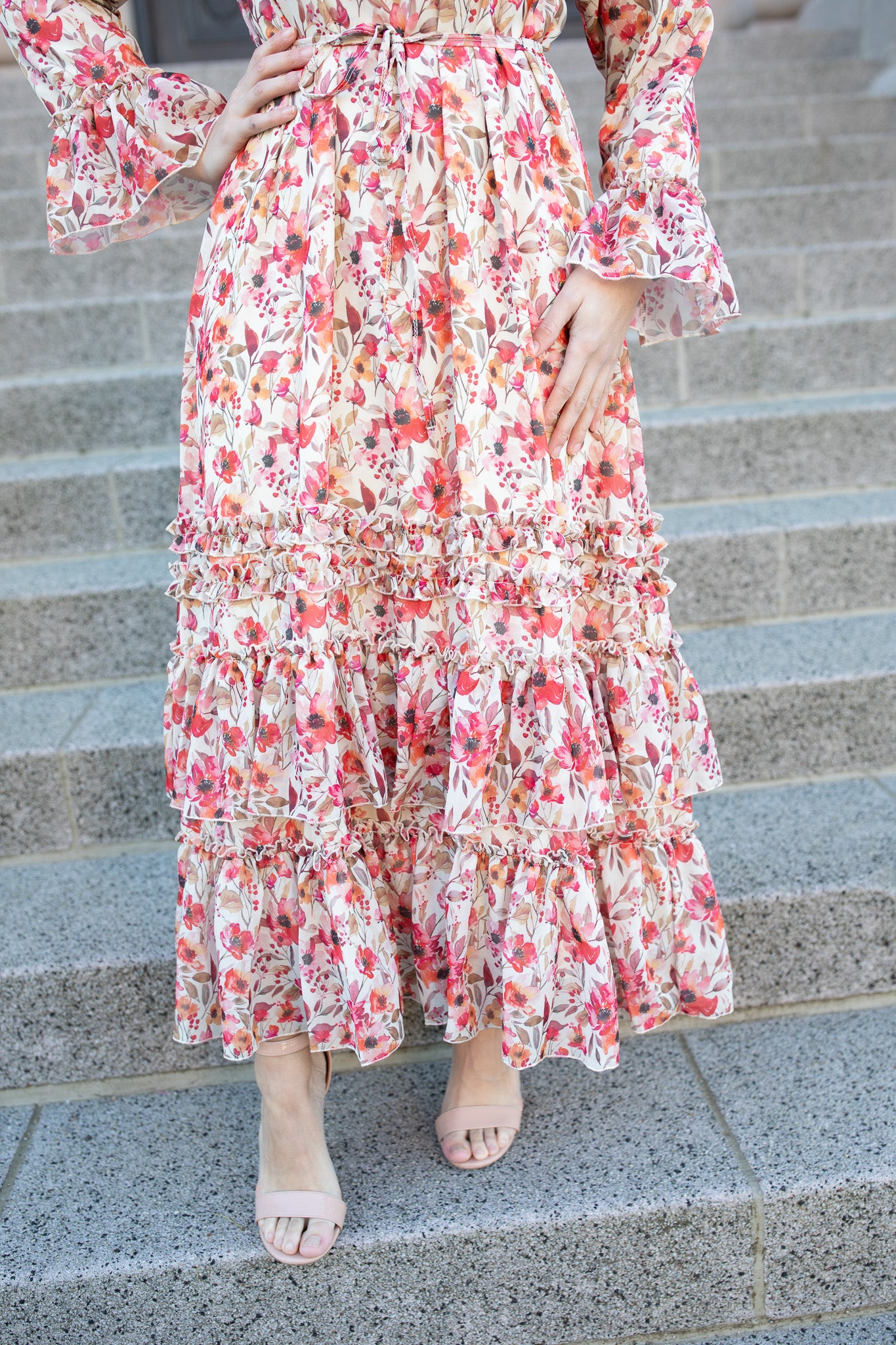 The flattering design can be styled two ways — wear it loose for an effortlessly flowy look or add the optional tie to define the waist. Ruffled cuffs, a romantic ruffle neckline, and cascading tiered hems add the perfect touch of graceful movement, making this dress ideal for Easter, Mother’s Day, weddings, or any special occasion.