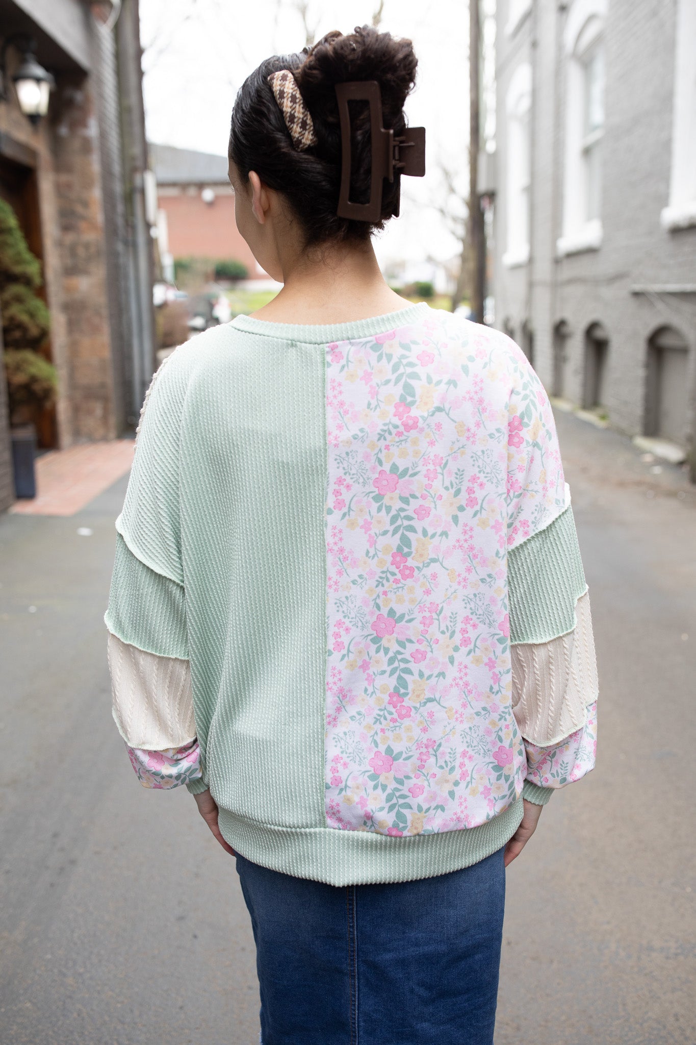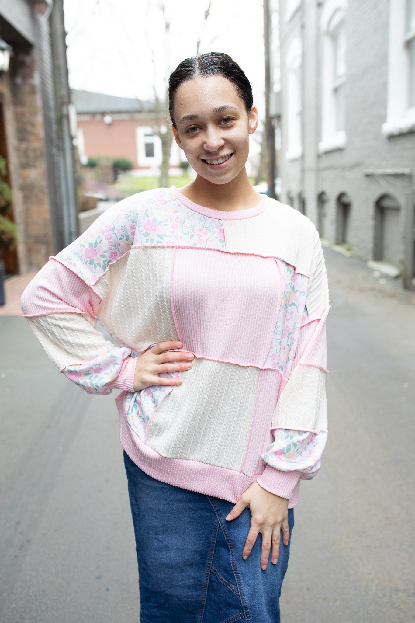 Fresh, soft, and full of spring charm ๐ธ The Spring Patches Top features a beautiful patchwork front designed with pastel tones and delicate florals for a light, feminine feel. The back offers a clean color-blocked design that balances the look perfectly. Crafted from a cozy, comfortable knit, this top is perfect for everyday wear.