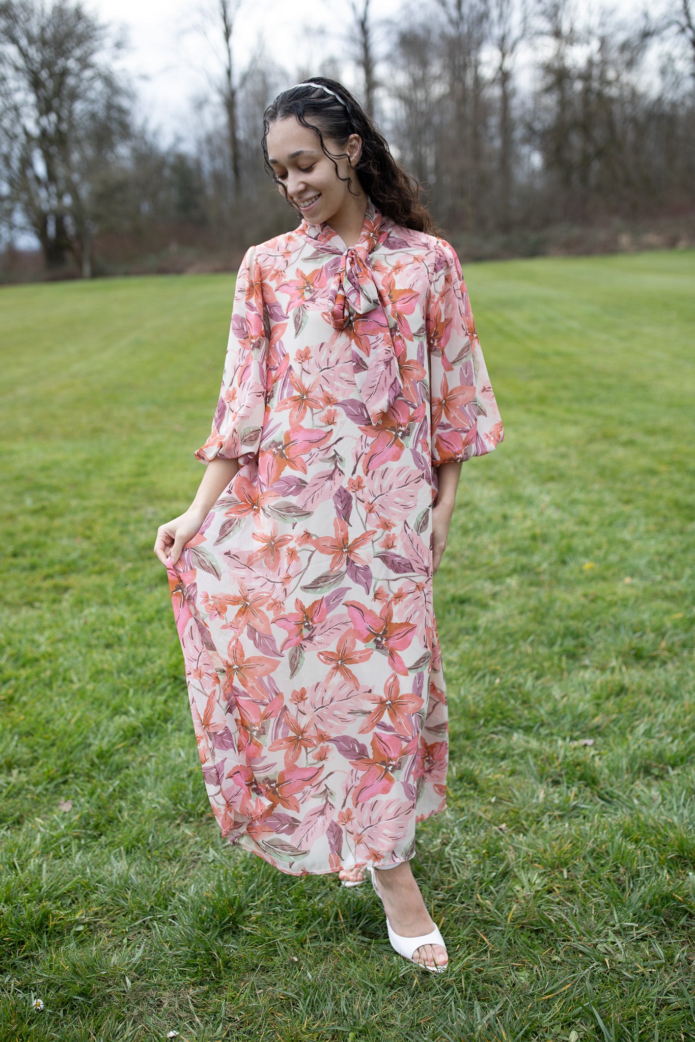 Our beloved Kensington Dress returns in a beautiful new chiffon fabric, perfect for spring celebrations and special occasions.