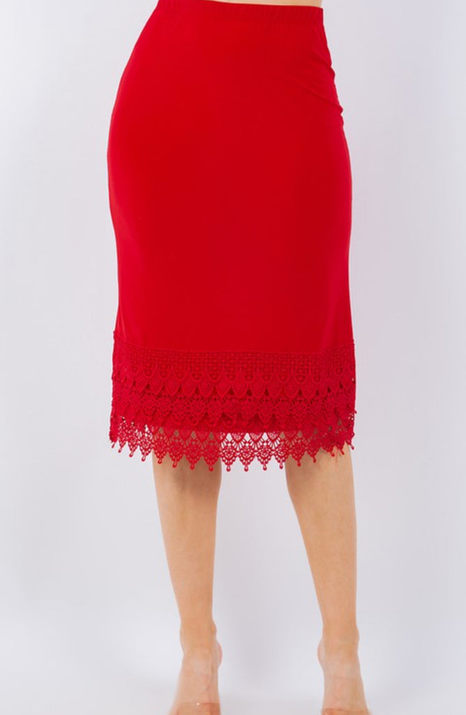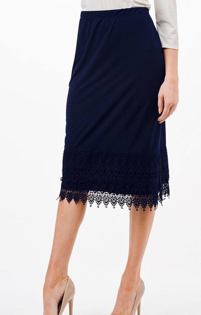 Our Lace Skirt Extender is the perfect staple wardrobe accessory for any occasion. Its blend of polyester and spandex fabrics provides a comfortable fit, while the elegant tear drop lace hem adds a touch of class. Available in three colors, black, ivory, and taupe, this extender can add length to any outfit.
