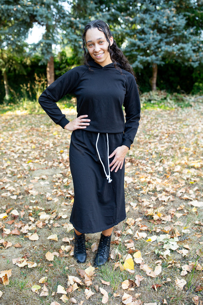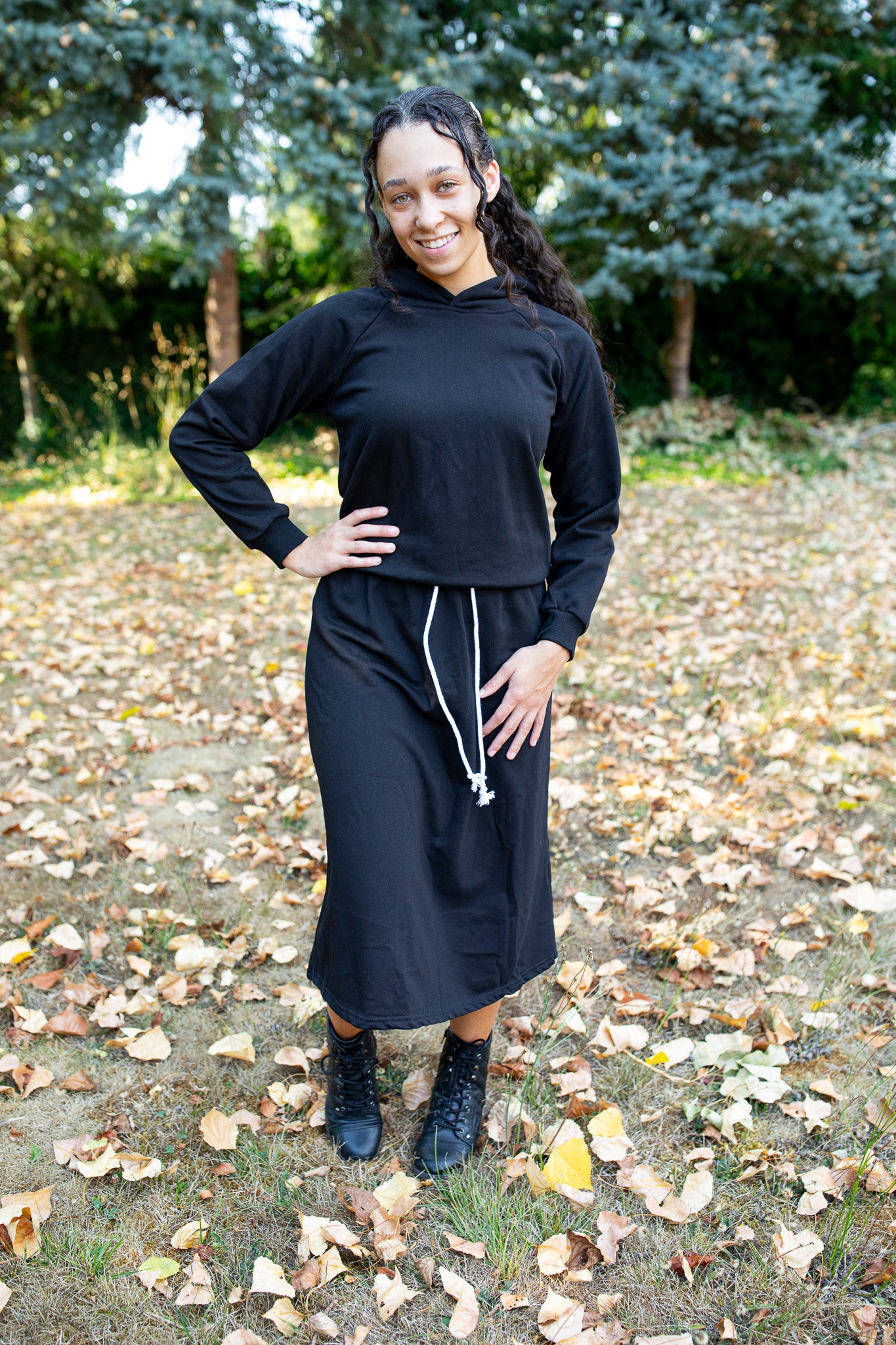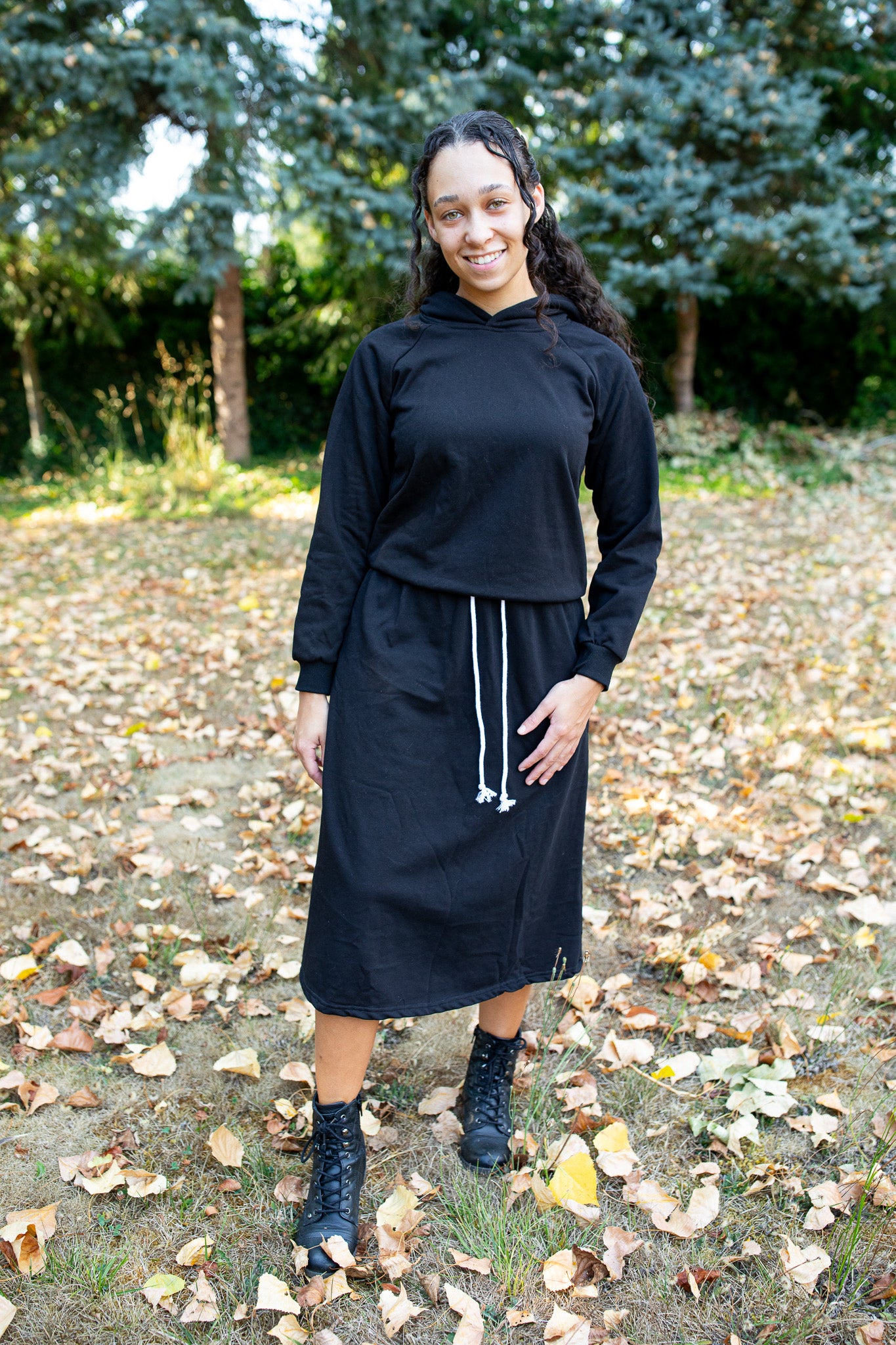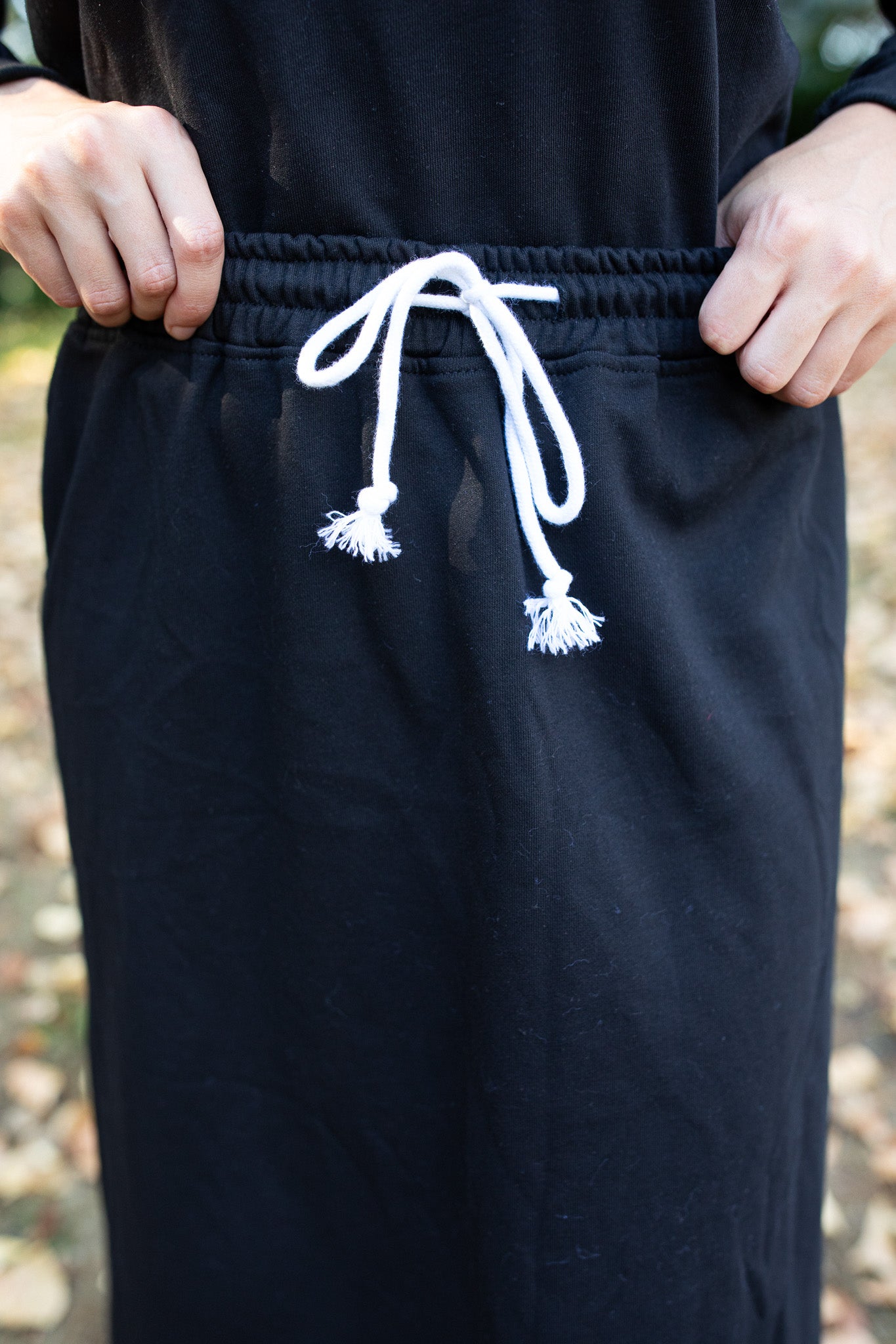 The Lounge Drawstring A-Line Skirt is the ultimate in casual comfort. Featuring a soft elastic waistband with a drawstring, it offers an easy pull-on fit without the need for constant adjusting. The relaxed A-line cut makes it flattering and effortless to wear, while the cozy fabric keeps it perfect for lounging or on-the-go days. Pair it with our matching hoodie top for a chic, coordinated set.