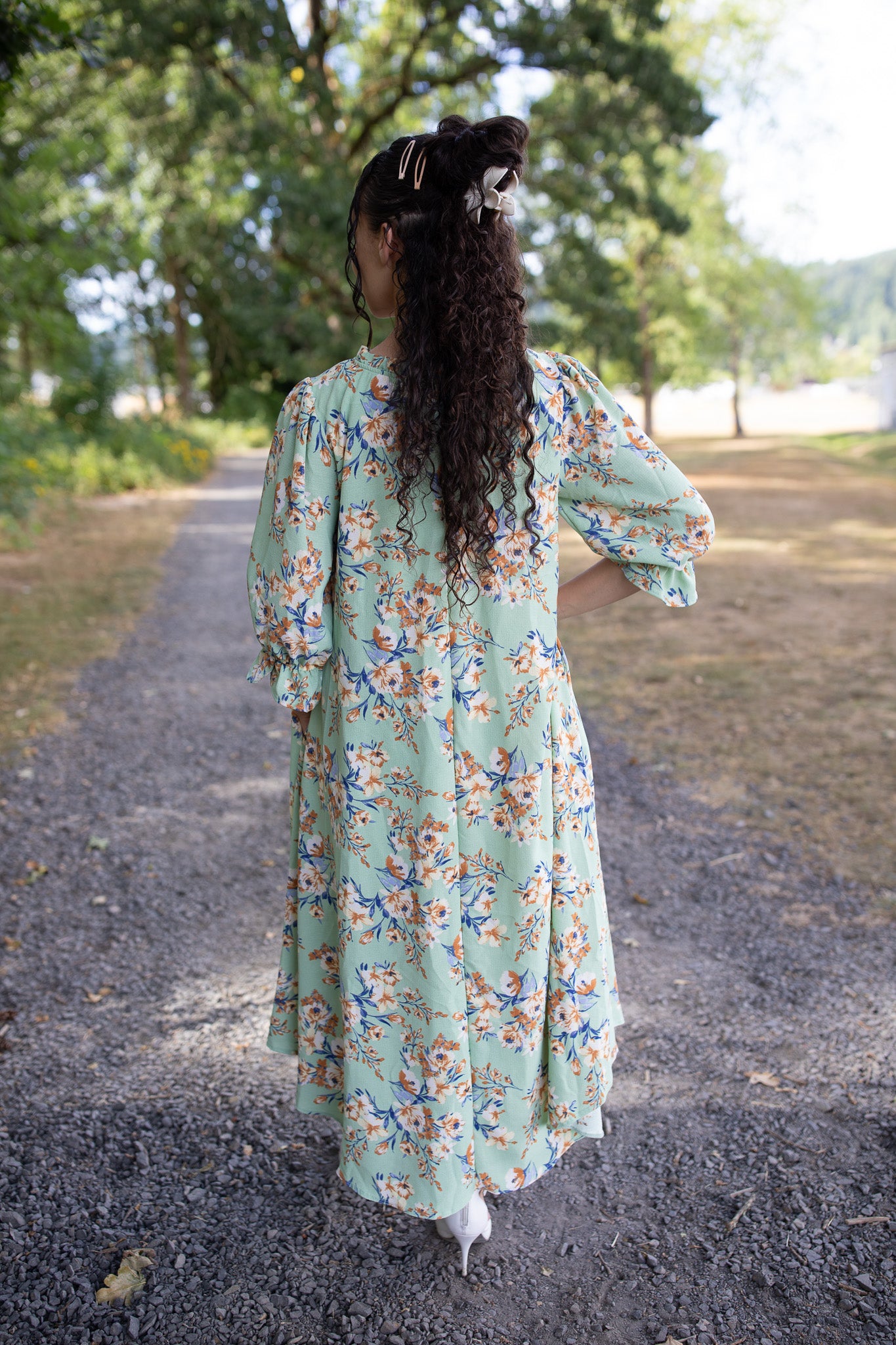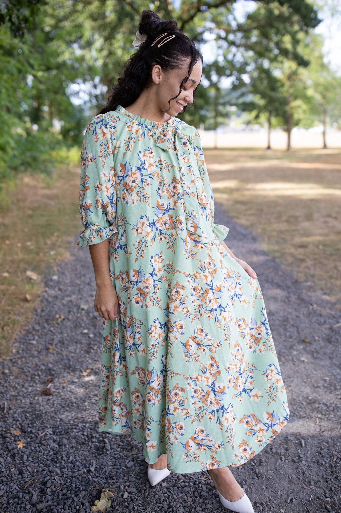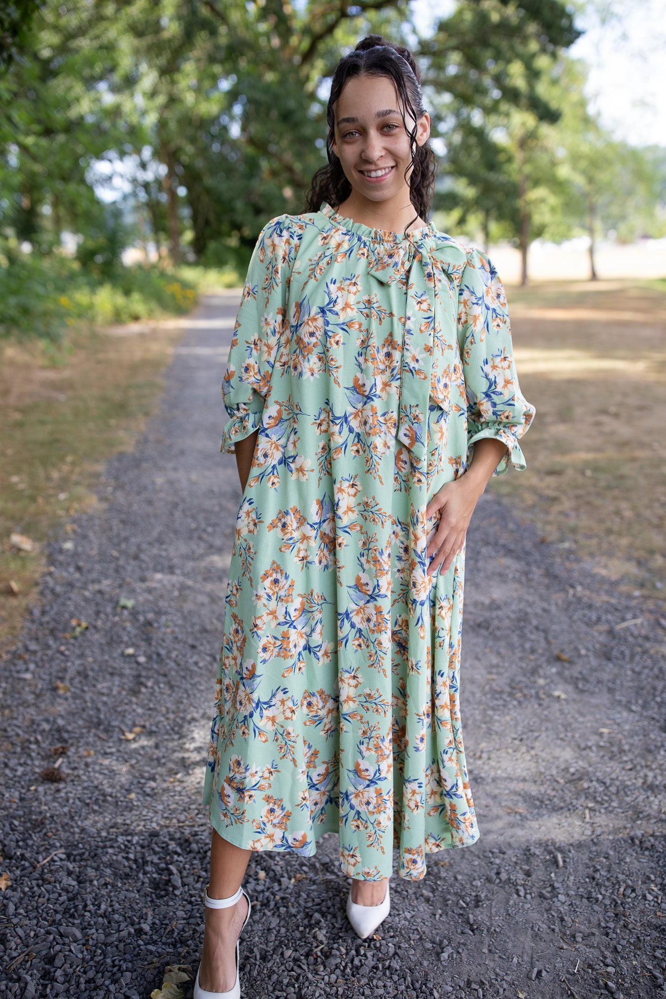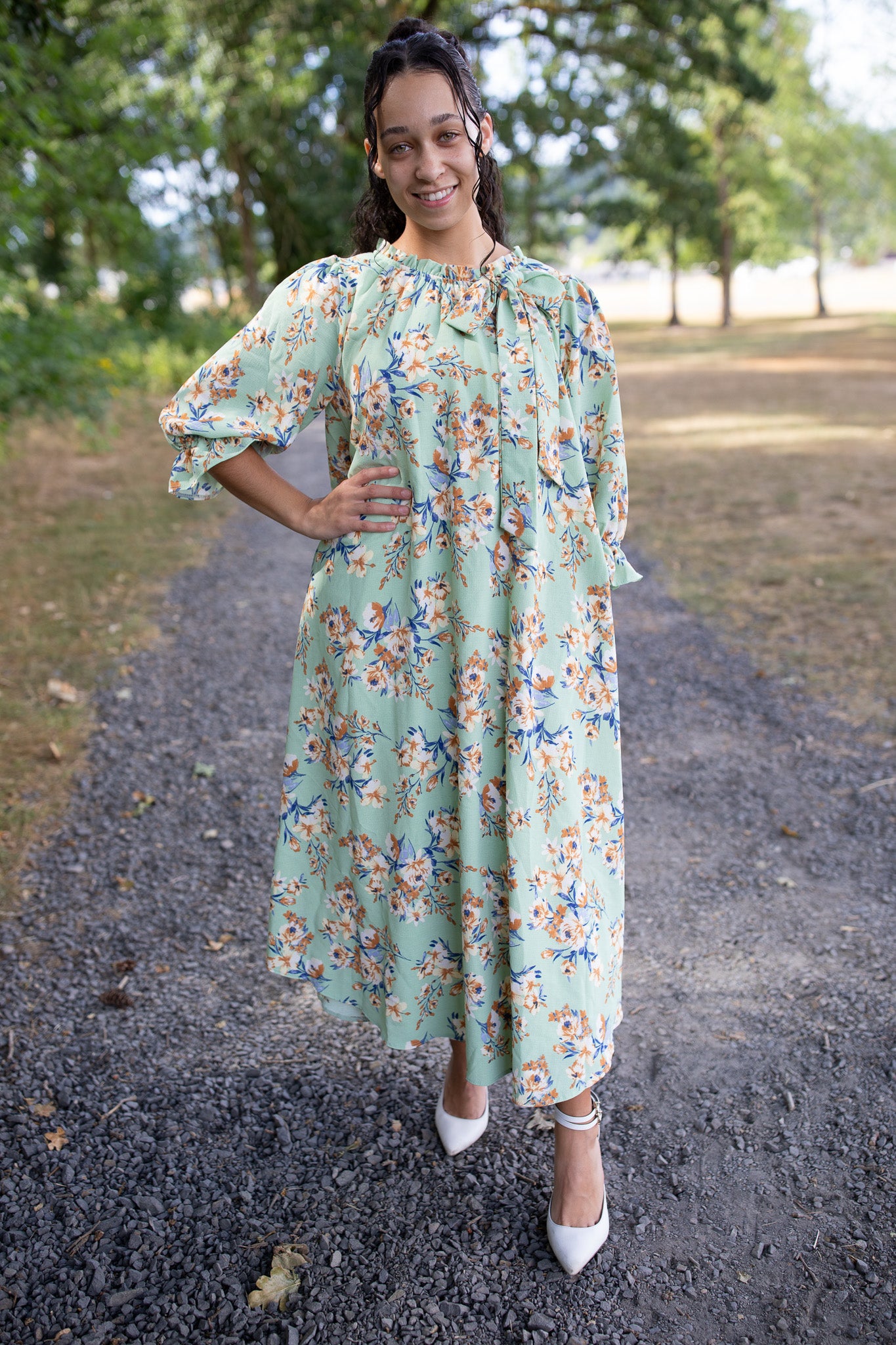 Breezy, beautiful, and perfect for the season—this floral midi dress is crafted from a linen-style fabric and fully lined with a soft, stretchy layer for all-day comfort. Featuring a relaxed silhouette, statement tie neckline, and 3/4 length sleeves with a slight puff, this dress blends charm and ease effortlessly. A flattering pick for late summer days or layering into fall. And yes—pockets included!