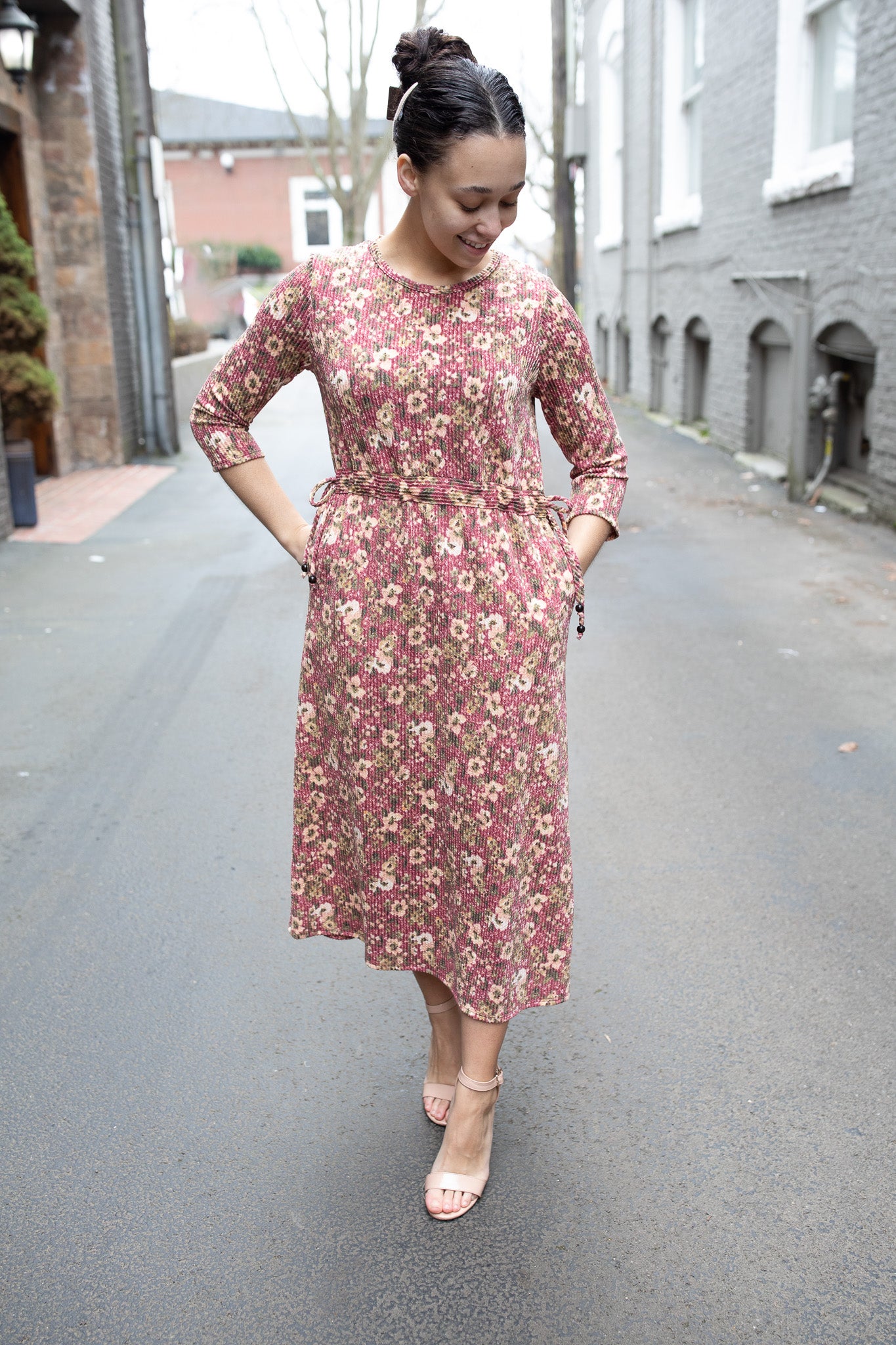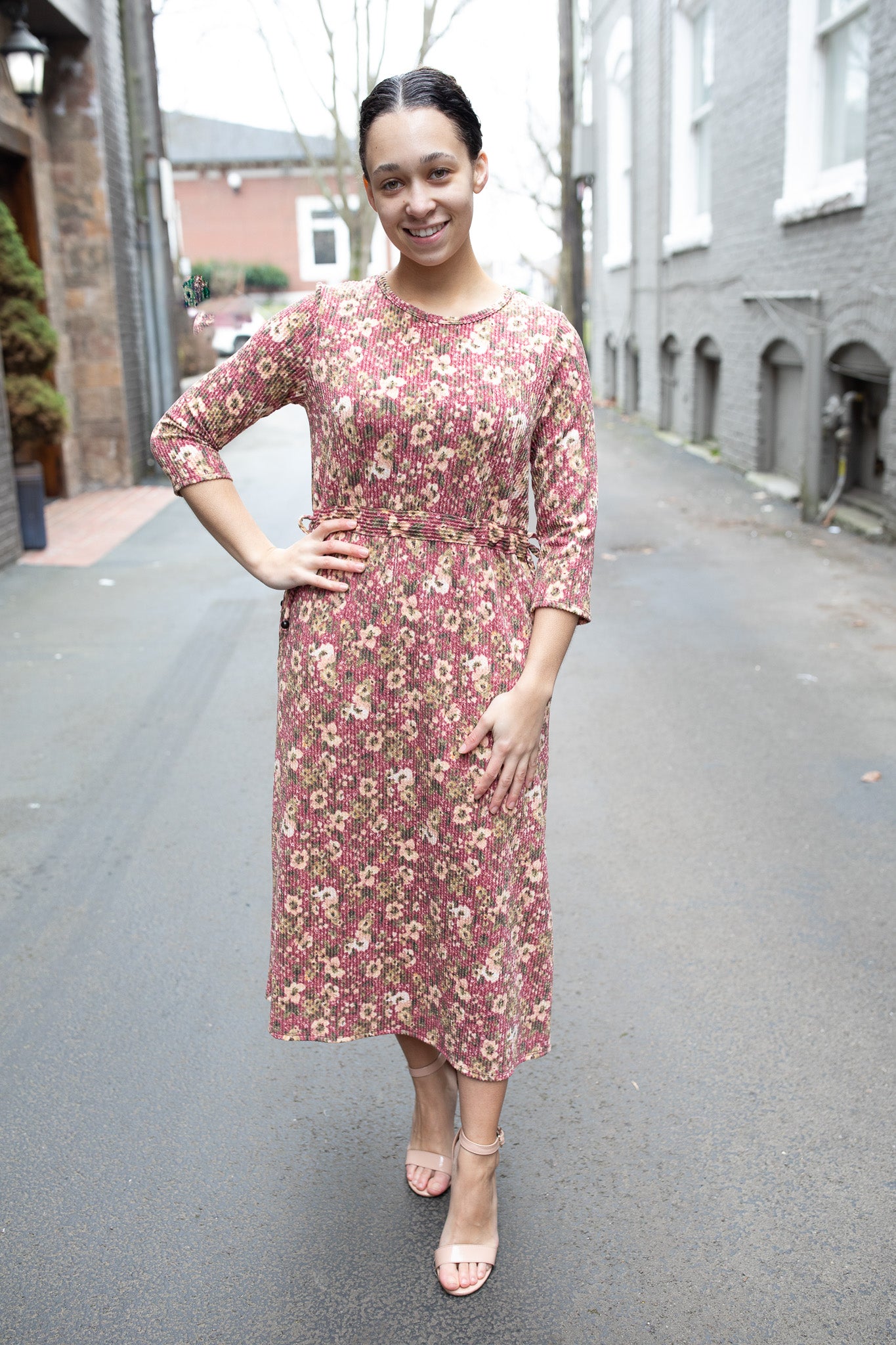 Crafted from a soft ribbed fabric, it features a flattering midi length and 3/4 sleeves for everyday wear. Style it casually with flats or sneakers, or dress it up with boots or heels for a polished look. For a looser, more relaxed fit, we recommend sizing up.